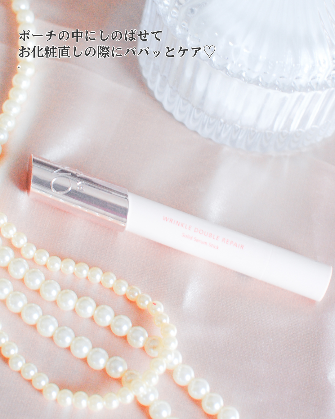 - 【医薬部外品】 24時間いつでもどこでもひと塗り。シワを瞬時にぼかし*1、本格的なシワ改善・美白*2・保湿ケアまで叶える薬用スティック状美容液です。 日中、シワが気になったら、ササッとシワぼかし ●ソフトフォーカス成分が光を拡散。凹んで暗く見えがちなシワを、瞬時に目立ちにくくします。また、肌に溶け込むピンクベージュ色のベースが、シワを明るくぼかします。 シワ改善&美白有効成分「リンクルホワイトN*3」配合 ●真皮と表皮の2 層にはたらきかけ、シワを改善。さらに、メラニンの生成を抑え、シミ・ソバカスを防ぎます。 ●高密封処方を採用し、うるおいが持続シールド感の高いワックス状・ペースト状のオイルを配合。肌と一体化するようになじみ、日中もうるおいを密封します。 メイクの上からも使いやすい、心地よい感触 ●オイルベースにリンクルホワイトN を配合した、コーセー独自処方。メイクの上から使ってもファンデーションがヨレにくいのびの軽さと、適度な密着感を実現。あと肌のベタつきやズルつきもないので、もちろん、メイク前にもご使用いただけます。 ●やすらぐグリーンフローラルの香り ●アレルギーテスト済み*4 ●パッチテスト済み*4 *1 粉体のメイクアップ効果 *2 メラニンの生成を抑え、シミ・ソバカスを防ぐこと *3 ナイアシンアミド、アスタキサンチンはアスタキサンチンH、低分子コラーゲンはコラーゲン・トリペプチド F、低分子ヒアルロン酸は加水分解ヒアルロン酸、ソフトフォーカス成分は架橋ポリスチレン・メチルシロキサン網状重合体です。 *4 すべてのかたにアレルギーや皮膚刺激が起きないというわけではありません。