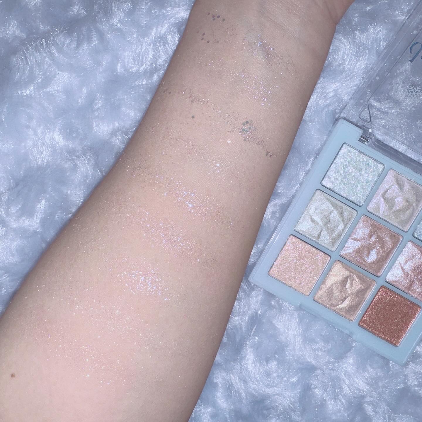 粉質はサラッとしてるけど、瞼の上でパサつくことはなくて綺麗に広がるからとっっっても輝く✨ 煌めきを足したいところにマルチに使えるから頬のハイライトとして使うのもめちゃくちゃかわいい♡ ホリデー限定だけどQoo10にはまだ残ってたからチェックしてみて♡