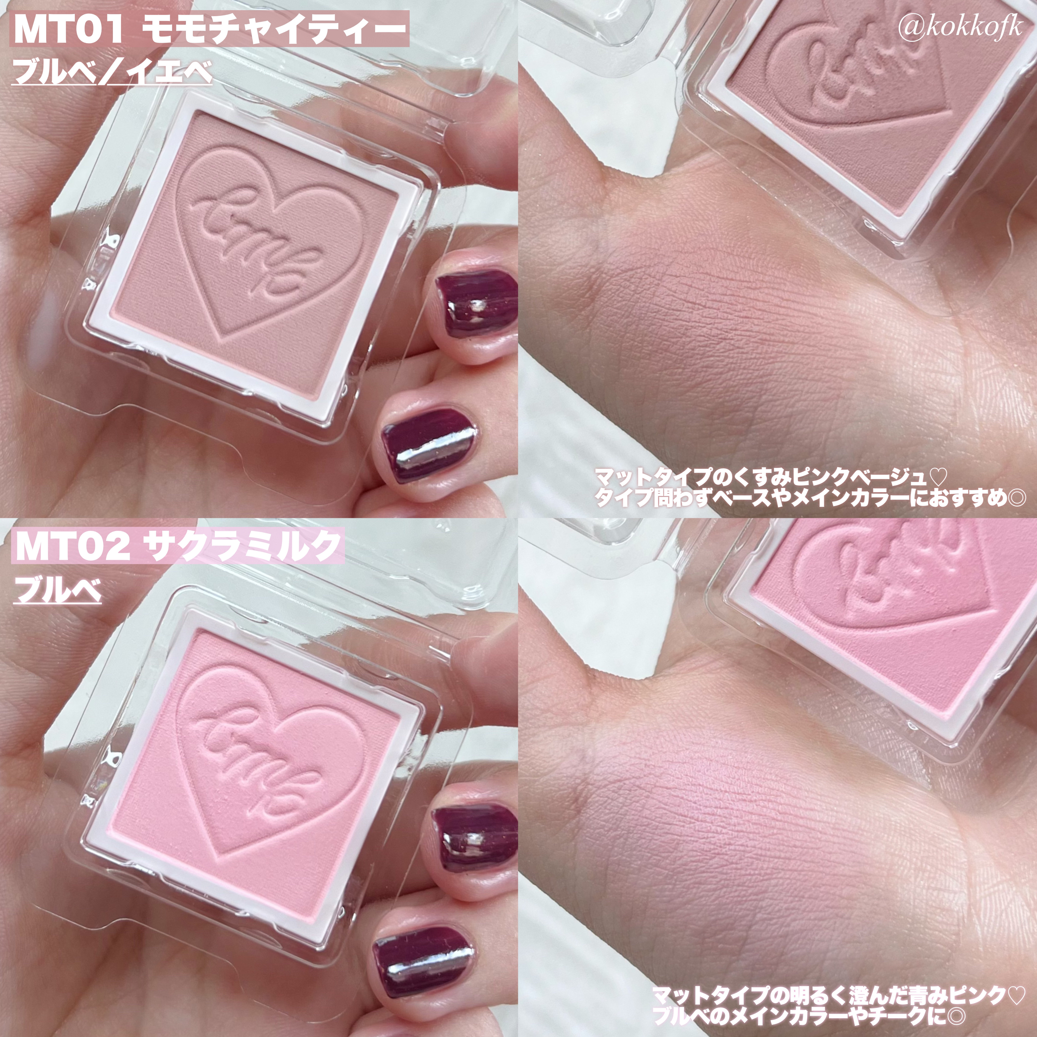 rom&nd────────────ベターザンパレット06 PEONY NUDE GARDEN (¥2900) rom&nd────────────ベターザンアイズ W03 Dry Strawberry (¥1569) HOLIKA HOLIKA────────────マイフェブムードアイパレットMOONY (¥2050) HOLIKA HOLIKA────────────マイフェブムードアイパレットPINK OLOGY (¥2050) CLIO────────────プロ アイ パレット13 PICNIC BY THE SUNSET (¥2390) PERIPERA────────────オール テイク ムード パレット04 MUTEFUL ROSE (¥1590) PERIPERA────────────オール テイク ムード パレット09 MOONLIKE LAVENDER PINK (¥1590) PERIPERA────────────インク ポケット シャドウ パレット05 TOUCHING TARO STARS (¥1190)