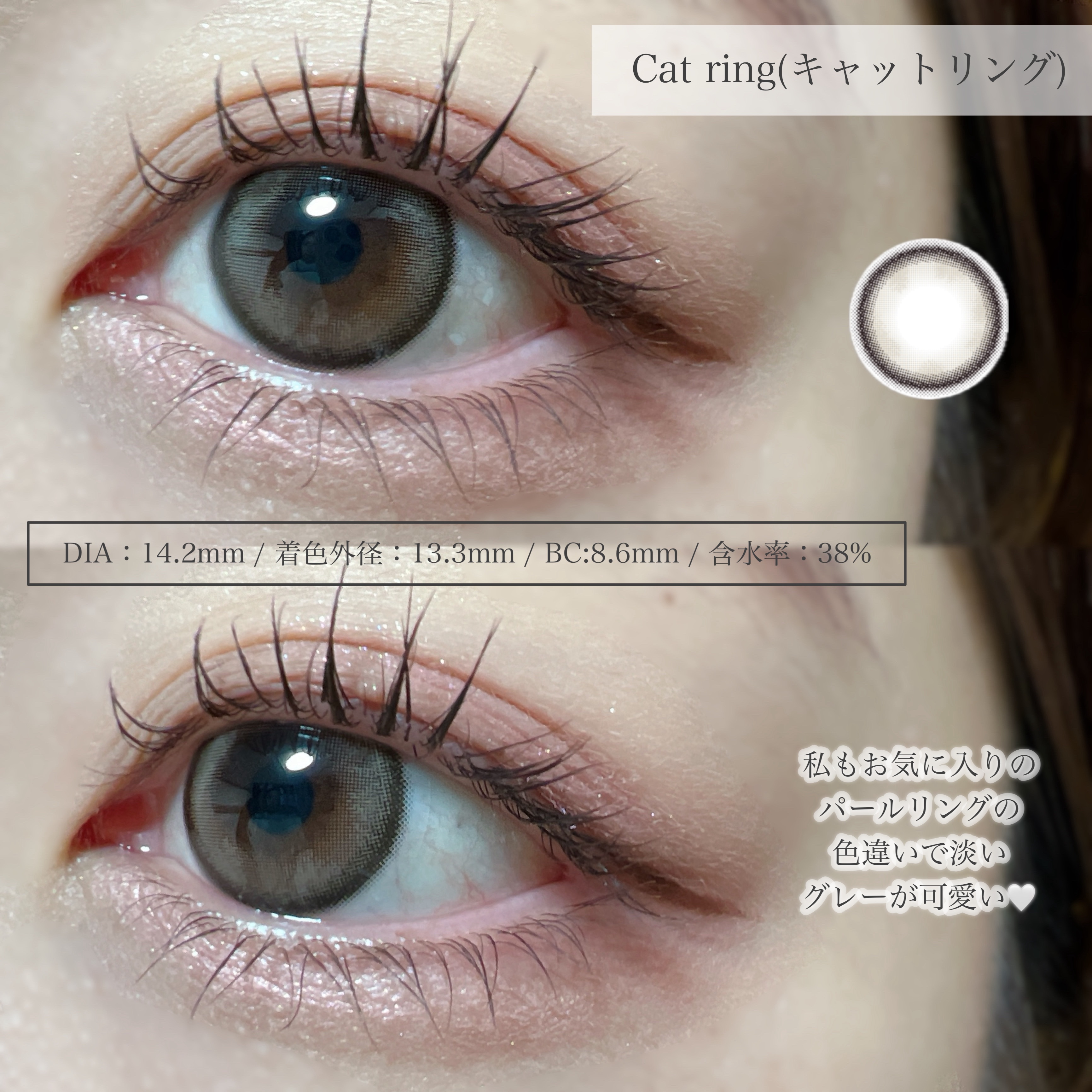 - 時には甘く、時にはオトナに。デザインだけでなく使いやすさにもこだわった、ナチュラルだけどしっかり可愛くなれるラインナップ。 一からこだわってつくった、いろんなメイクやファッションに合わせて楽しめるオトナ女子もつかいやすいナチュラルカラーのレンズデザインです。 毎日使うものだからこそ、レンズスペックまでこだわりました。 〇超薄型レンズ採用 0.06mmの超薄型レンズを採用。負担の少ない使い心地で、快適にお使いいただけます。 ※装用感には個人差があります。 〇日差しもケア UVカット機能 紫外線UV-Aを約50%、UV-Bを約95%、レンズに配合されたUV吸収材でカット。 ※目全体及び目の周辺を完全に覆っているわけではないのでUV防止用眼鏡・サングラスの代用にはなりません。 〇うるおい成分配合 うるおい成分、"MPCポリマー"がレンズをやさしく包み込むので、うるおい長持ち。 〇乾きにくい低含水レンズ 低含水レンズ素材は、水分蒸発量が少ないため、乾きにくいのが特徴。 カラーコンタクトレンズの不適正使用による眼障害の危険性等などがあります。 ●コンタクトレンズは高度管理医療機器です。不十分な洗浄・消毒など不適切なケアや、長時間・交換期間を超えた装用により、アレルギー性結膜炎、角膜感染症、角膜潰瘍等の重篤な眼障害が発生する危険性があります ●ご使用前に取扱説明書を確認してください 使用上の留意事項 ●眼科医院等を受診してからお求めください ●眼に異常を感じたら直ちにレンズ使用を中止し、お近くの眼科等で診察を受けてください ●医師の指示にしたがってご使用ください ●コンタクトレンズを装用する場合、自覚症状がなくても、眼科医院等での定期検査を受けてください ●レンズに不具合がある場合は使用しないでください
