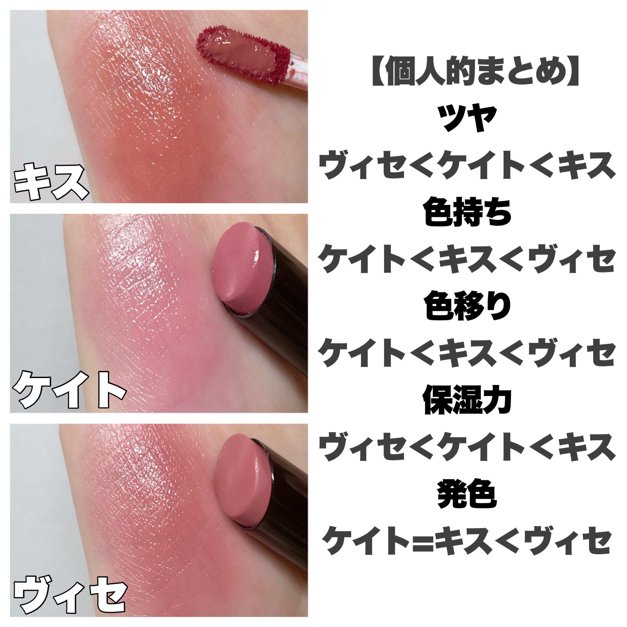 KATE&Viseeの人気リップ5種比較🐈⬛①KATEリップモンスター『やはり色持ちはNO.1✨1本持っておいて損なし』【特におすすめの方】▶︎色持ちをしっかりさせたい方▶︎発色の良いリップをお探しの方②KATEリップモンスタークリアトー...