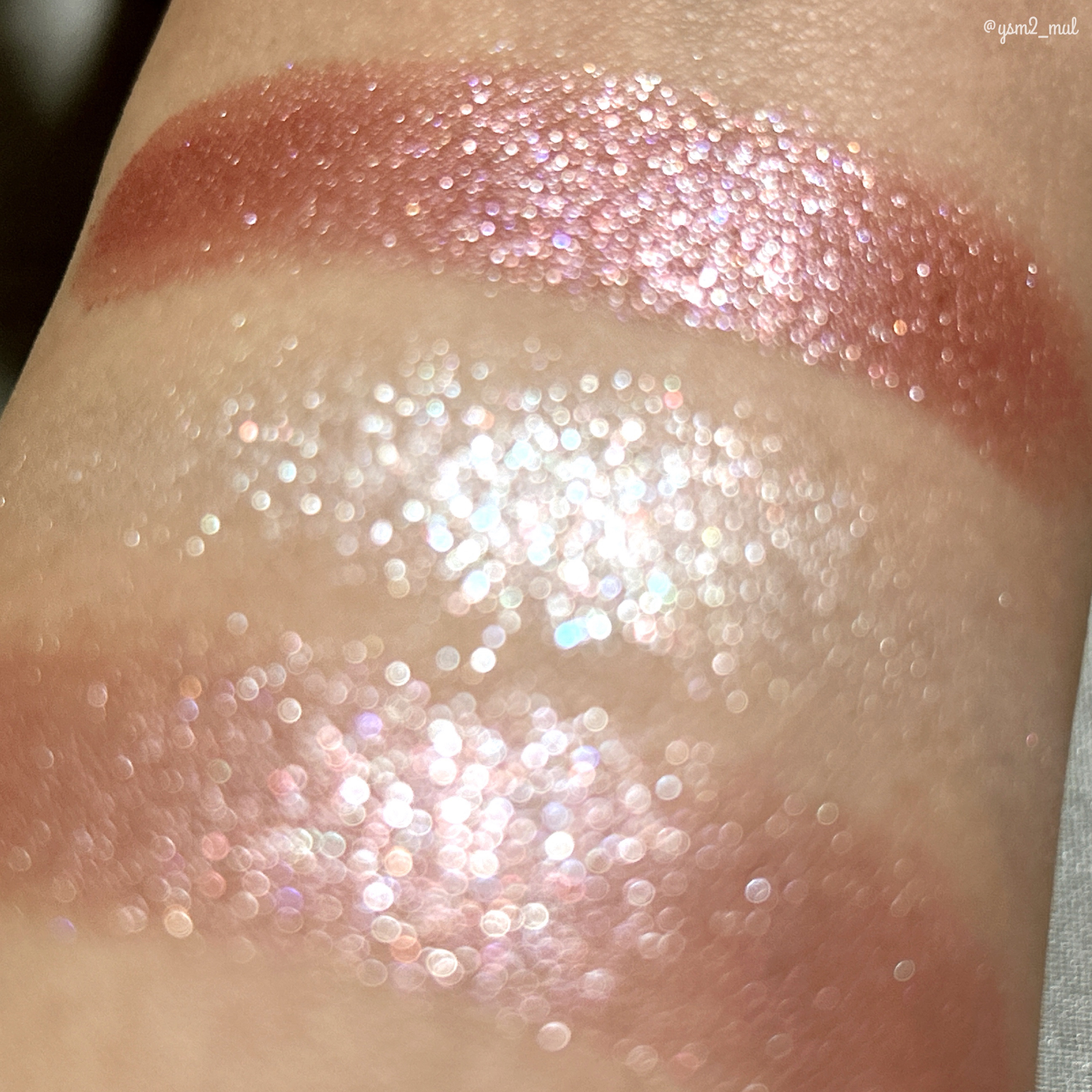 本物の宝石職人さんが、輝き方などを考えて設計したラメなのだそう!アイシャドウベースが無くても、色もち、ラメもちが良い💖 粉質も柔らかく、ラメがプチプラ越えな感じ。ラメ好きさんも満足できそう♪ どれもPC問わず合わせやすいブラウン〜ベージュ系だよ!