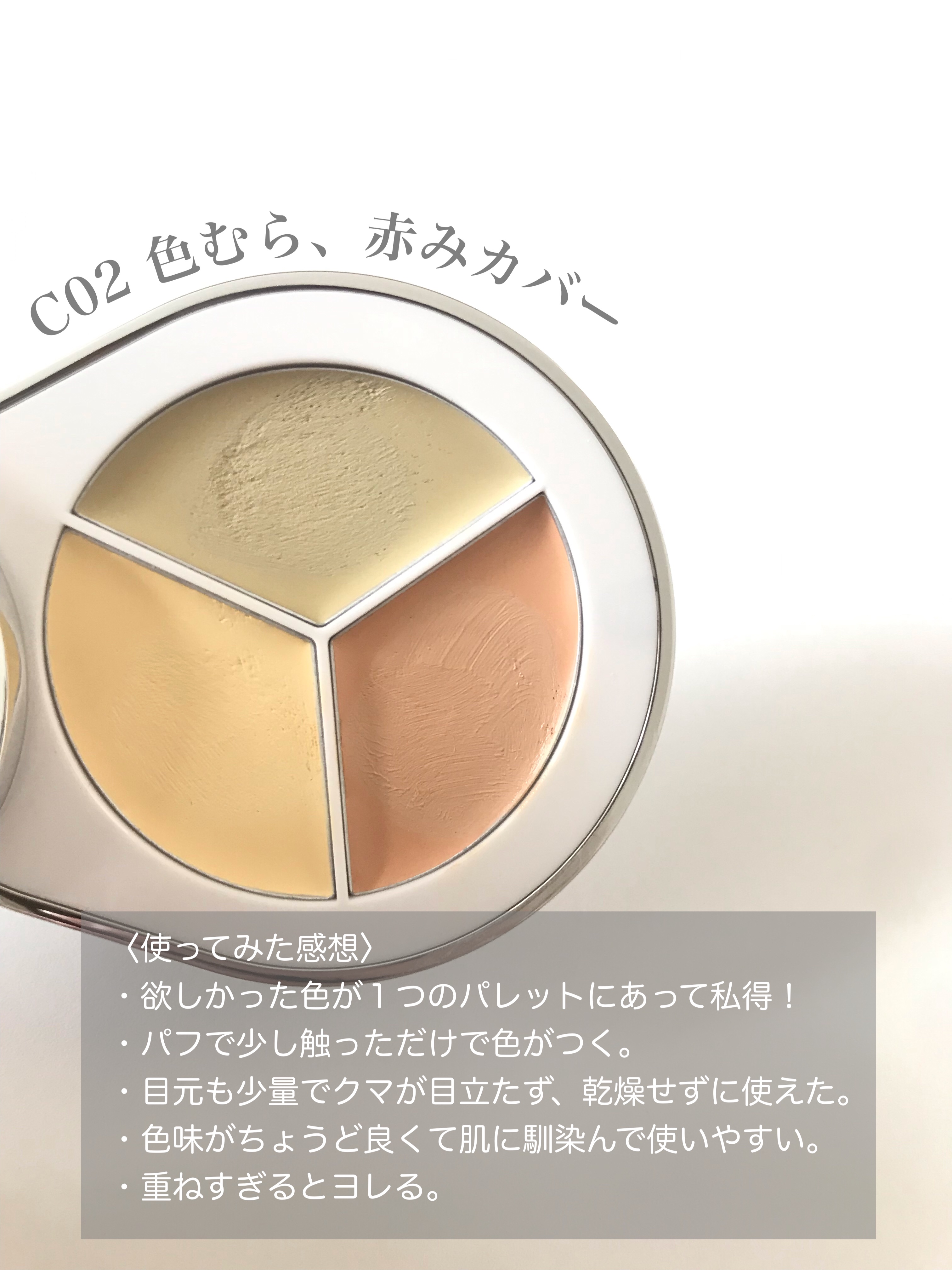 - 肌悩みに合わせた3つのタイプのコンシーラパレットです。 シミやトラブル跡などをカバーしてくれます。