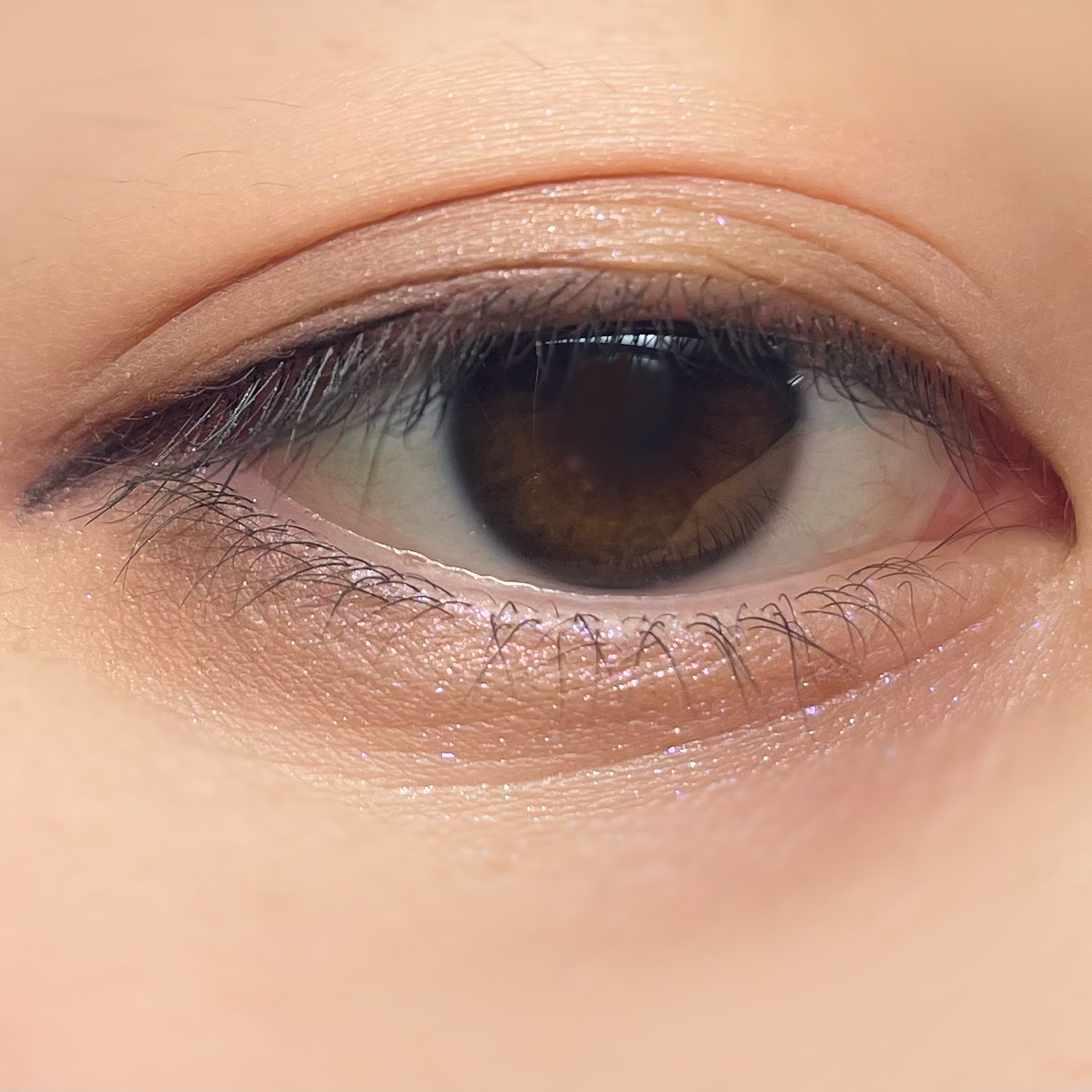 のりを塗る範囲は、瞼の中央あたりかつ、まつ毛の生え際までは塗らないようにします。 そうすると塗った部分と塗ってない部分との違和感も少ないし、瞼でまつ毛の生え際が隠れにくいです。 本来の二重線と目尻の部分で二重の線が重なるようにするとより自然な仕上がりになります。 ドライヤーで触ってペタペタしなくなるまで乾かして完成です。