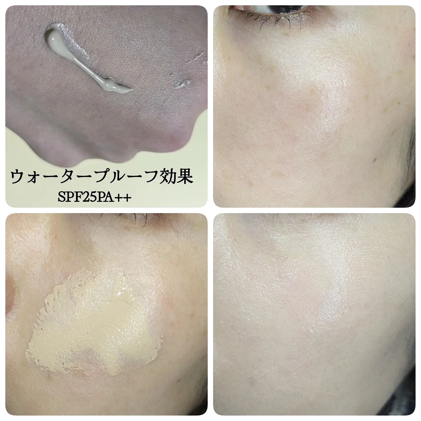 - 水、シクロペンタシロキサン、酸化亜鉛、酸化チタン、エチルヘキサン酸セチル、グリセリン、BG、メタクリル酸メチルクロスポリマー、セスキオレイン酸ソルビタン、イソステアリン酸ソルビタン、硫酸Mg、PEG-10ジメチコン、(ベヘン酸/エイコサン二酸)グリセリル、ラウリルPEG-9ポリジメチルシロキシエチルジメチコン、ジステアルジモニウムヘクトライト、エチルヘキシルグリセリン、フェノキシエタノール、水酸化Al、ステアリン酸、炭酸プロピレン、ジメチコン、ヒアルロン酸Na、トコフェロール、スクワラン、テトラヘキシルデカン酸アスコルビル、シロキクラゲ多糖体 ツボクサエキス、マイカ、シリカ、エタノール、アルミナ、加水分解シルク、ユキノシタエキス、カミツレ花エキス、ヨモギ葉エキス、加水分解コラーゲン、ハトムギ種子エキス、タルク、酸化鉄、ハイドロゲンジメチコン