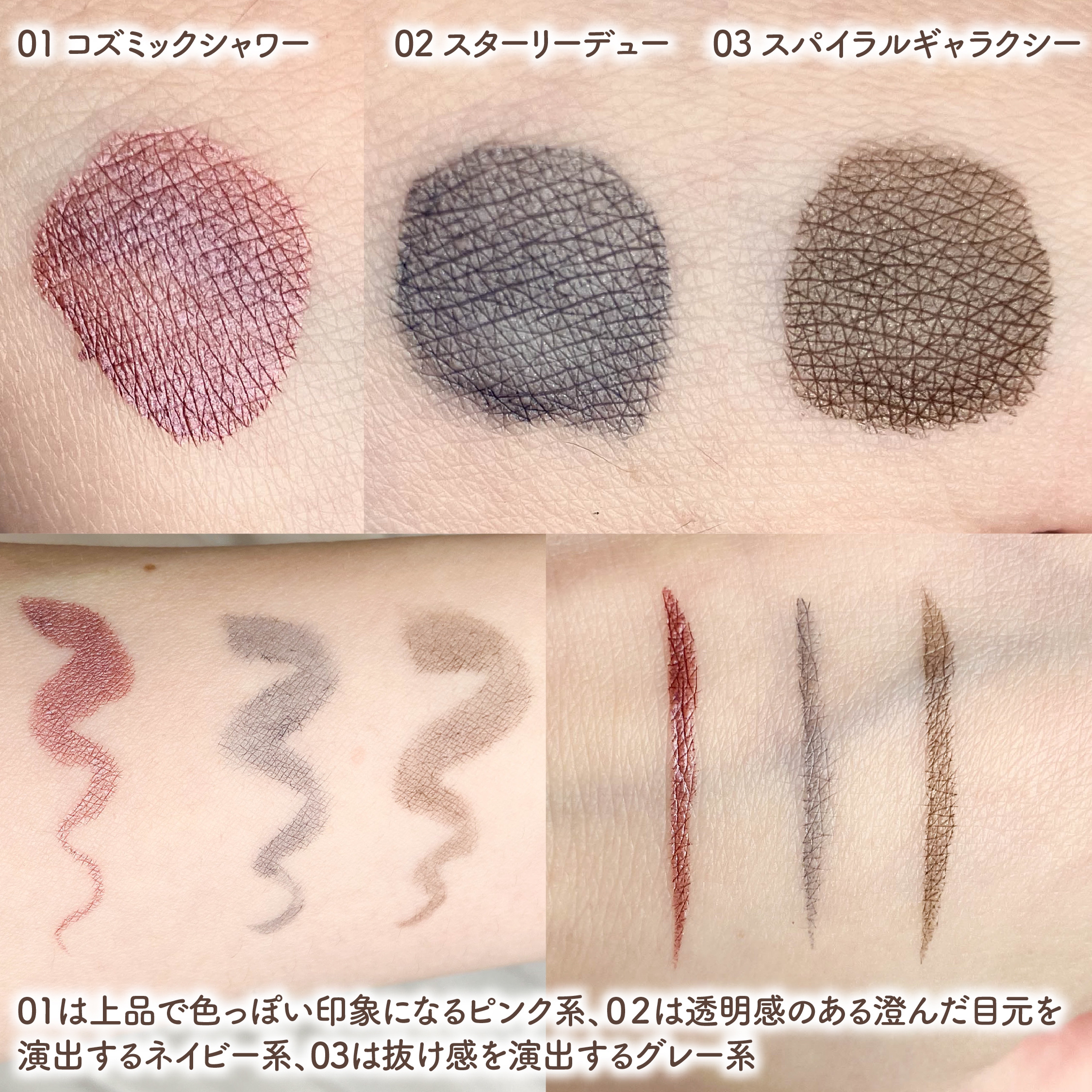キャンメイクトキメキトゥインクルアイライナー01コズミックシャワーピンク系🎀💕💓💗アエナで購入しました.ᐟ.ᐟしっかりピンクに発色してアクセントにいい感じ✨️ラメ感?パール感?はそこまで主張強くなく、ギラギラしてないので使いやすいと思います....