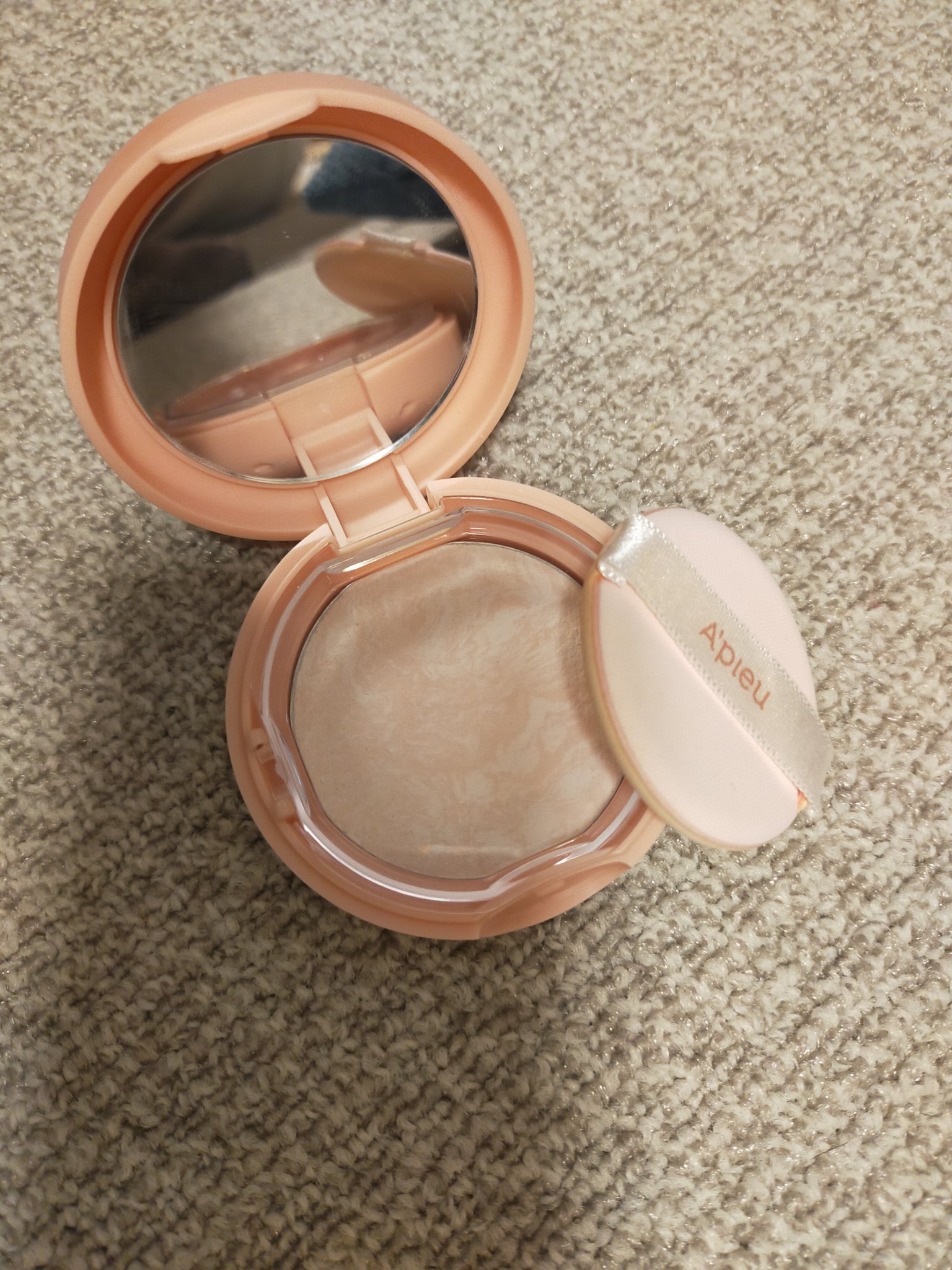 A'pieuジューシーパンジェリーパウダー白とピンクのマーブル模様が可愛いパウダー💘表面はなめらかでちょっとバームっぽいだけど押すと少しふにっとするパフは薄すぎず厚すぎずパフ自体はいいんだけど以下の理由で使わないほうがいい↓<使用感>全顔に使...