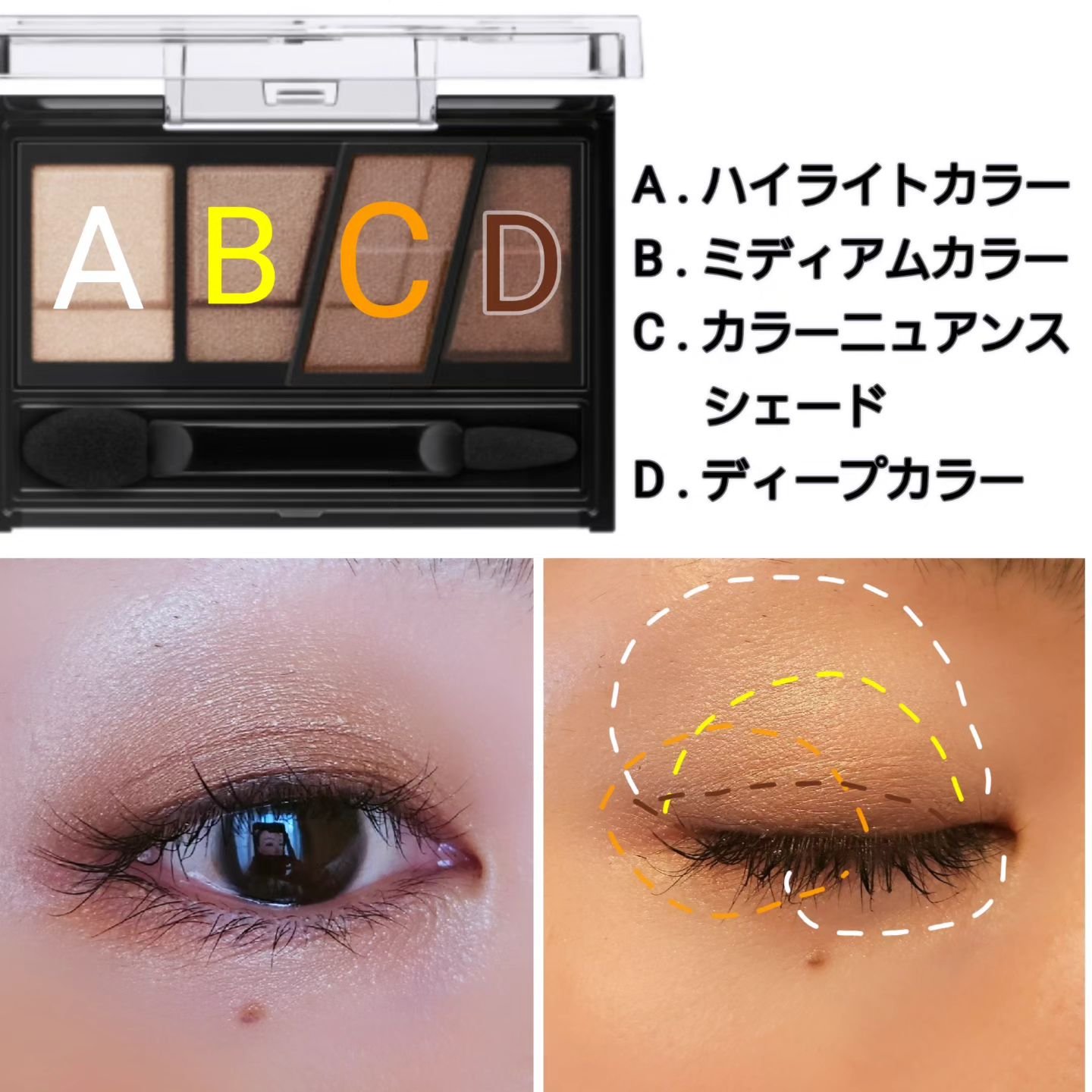 - カラーニュアンスシェードを目尻に入れるだけで目幅を大きく見せ※、抜け感のある明るい大きな目元に仕上るブラウンアイシャドウ。 ブラウン×カラーニュアンスの4色セット。※メイクアップ効果