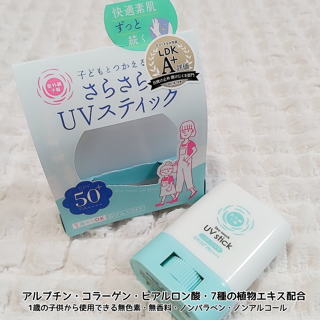 - 【シーズン限定発売】 【SPF50+ PA++++ UV 耐水性★★】 ベタつきが気になる夏の肌も、サッと塗るだけで驚きのさらさら!快適素肌がずっと続きます。 直塗りタイプだから手を汚さず塗れて、ピタッと密着! さらに、持ち運びに便利なポケットサイズだから、いつでもどこでもスマートにUVカット♪ テカりが気になるときのメイク直しにもおすすめです。 ●手を汚さず塗れて、さらさら続く♪ ●直塗りだからピタッと密着! ●デリケートな子どもの肌にも使えるやさしい使い心地…無色素・無香料・ノンパラベン・ノンアルコール ●カサつく肌のうるおいを守る…アルブチン、コラーゲン、ヒアルロン酸、7種の植物エキス配合(全て保湿成分) ●ウォータープルーフなのに石けんで簡単OFF ●1歳からOK!子どもと一緒に使えます。