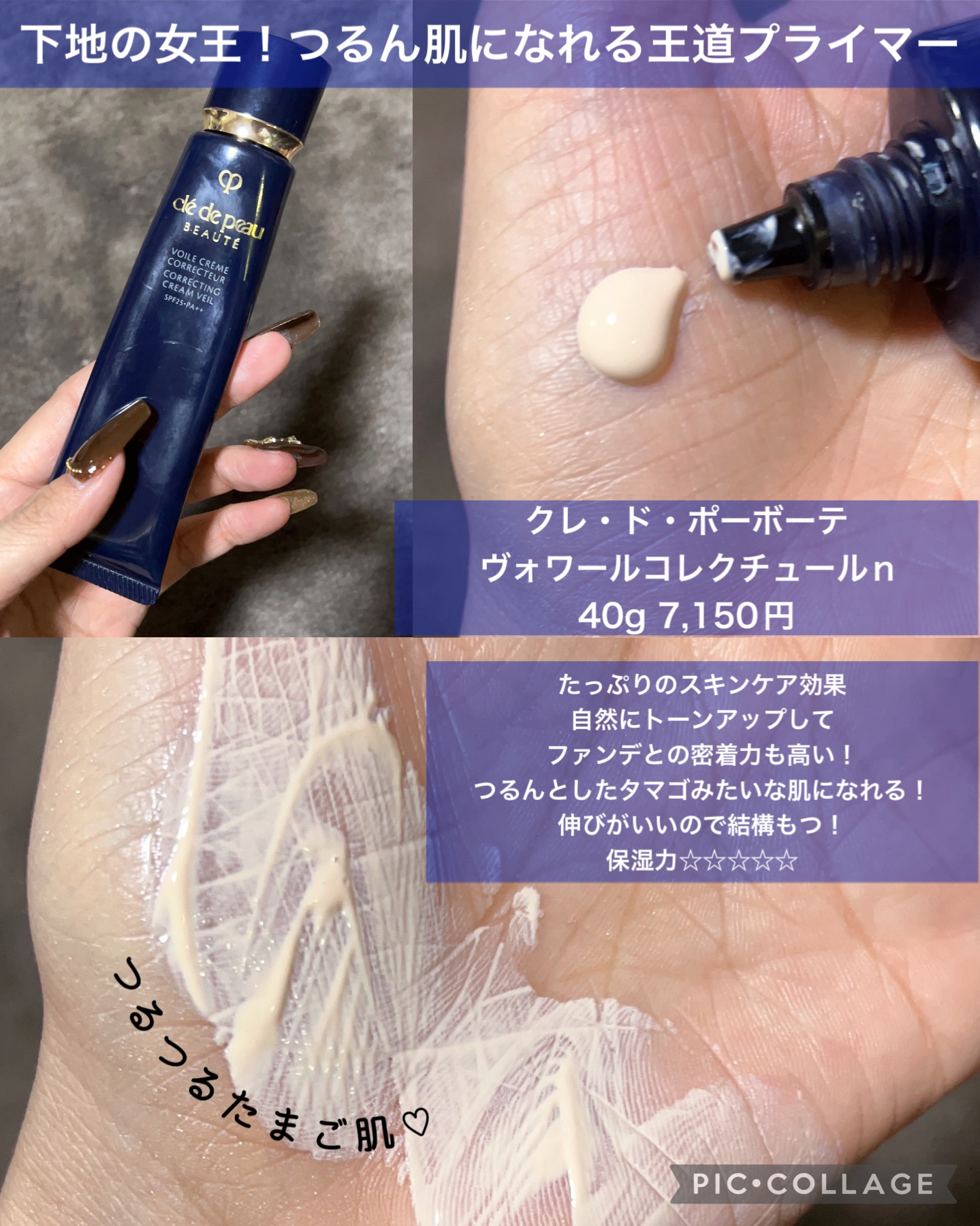 3種のラベンダーパールが入っていて、白浮きせず、肌を明るく見せてくれます✨ 近くで見るとパールがキラキラするくらい…!(輝きすぎないよ) 化粧下地だけど”美容液レベル”で保湿効果と潤いを与えてくれるも特徴◎ 正直、脂性肌の私は夏だと潤い過ぎてテカテカしちゃうかも💦 伸びのある使い心地とトーンアップするツヤ仕上がり、人気なのも納得です~~~☺️ ポルジョの下地、やっぱりよい!!