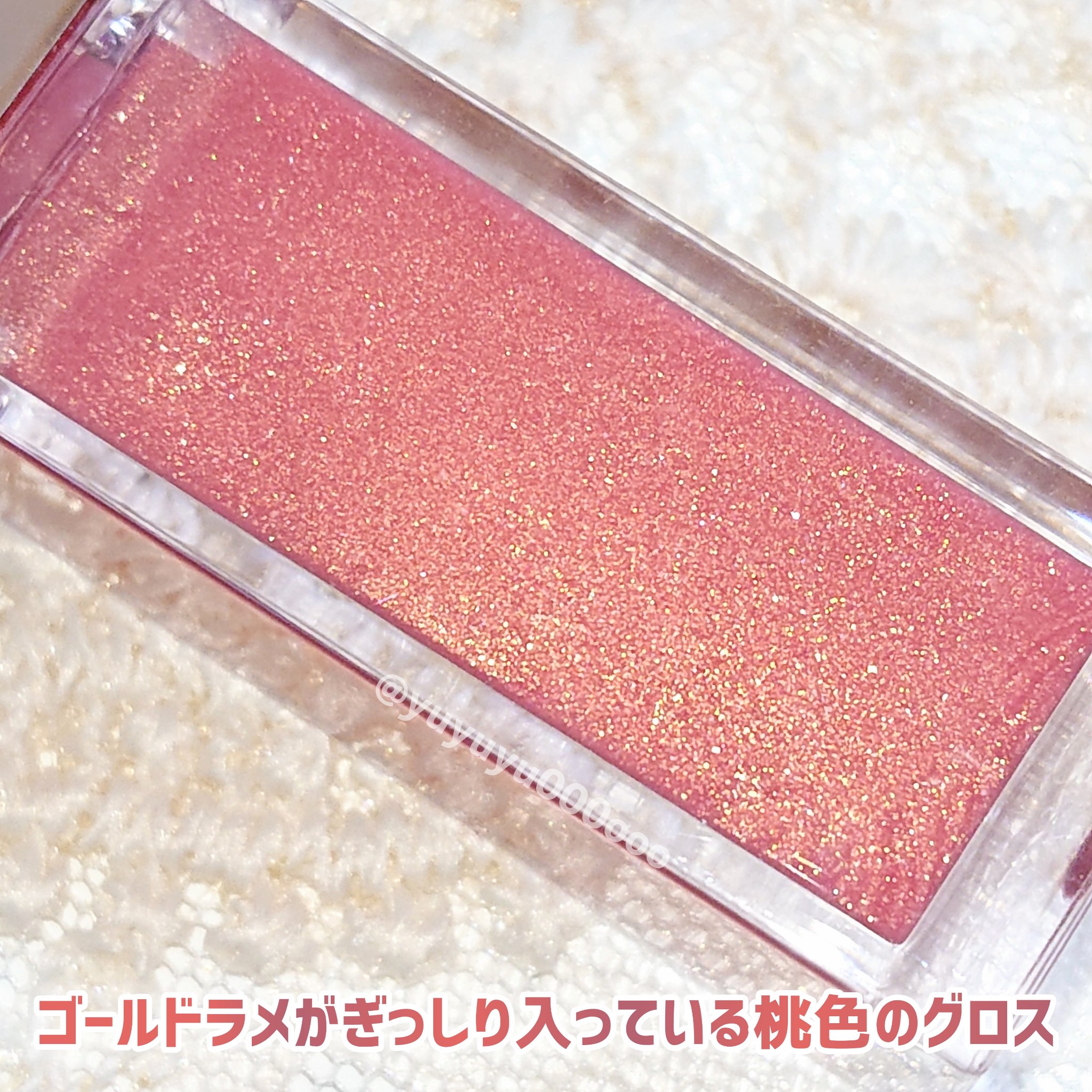 どちらのカラーもゴールドラメがたっぷり🌟 グロスだから色持ちはほぼしないんだけど、 ラメはちゃんと残るのでずっと華やかな唇で過ごせちゃう☺️ こんなにラメラメなのに嫌なジャリジャリ感は全くなくて 香りもついてないとこがまろまゆの推しポイント☝️💕 保湿力も抜群でした♡ 薄づきで馴染みが良くて肌の色を気にせず使えるカラーだから プレゼントするのにも良さそうな感じ🎅🎄