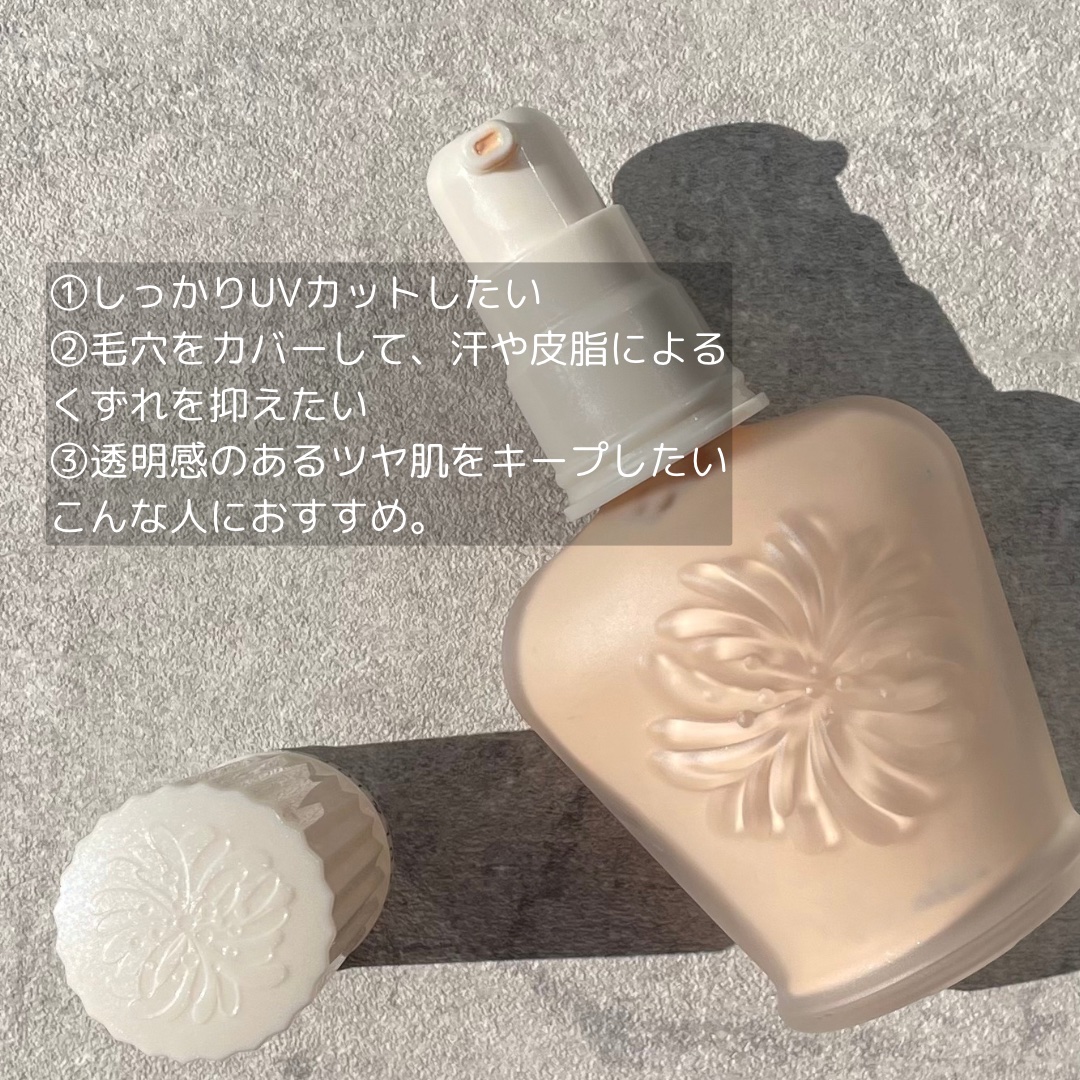 みずみずしいのに最強で毛穴もカバー、クリアなツヤ肌にしてくれます🤍 ブランド史上最高レベルのUVカット効果! 肌にピタっと密着し崩れにくく美しい仕上がりをキープ。 毛穴をぼかしてカバー。 保湿効果に優れみずみずしいうるおいを与えるオレンジ花水や 3種のヒアルロン酸も配合!