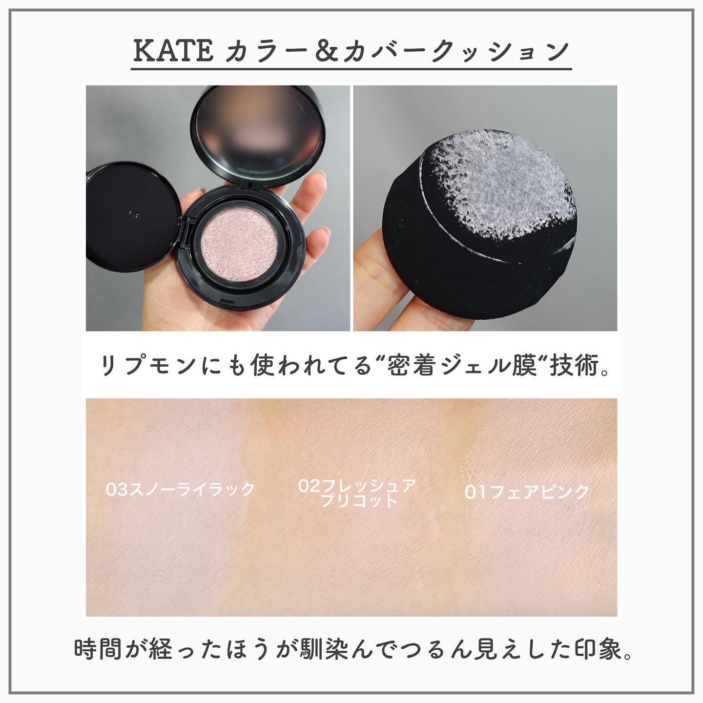 ニュアンスカラー×カバー力でくすみを飛ばすKATEのカラークッションファンデ みずみずしく潤いたっぷり!伸びも良く少量で🙆♀️ 肌から蒸発する水分を活用してジェル膜に変化するから色も質感も長持ち✨