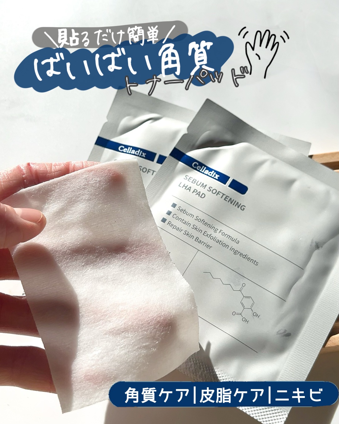 #PR#提供@celladix_jpセラディックスセバムソフトニング131LHAピーリングパッド余分な皮脂や油分をオフして皮脂バランスを整えくれるトナーパッド。使い方5分程パック→拭き取り→パッティング柔らかく伸びるパッドが密着し、やさしく拭...