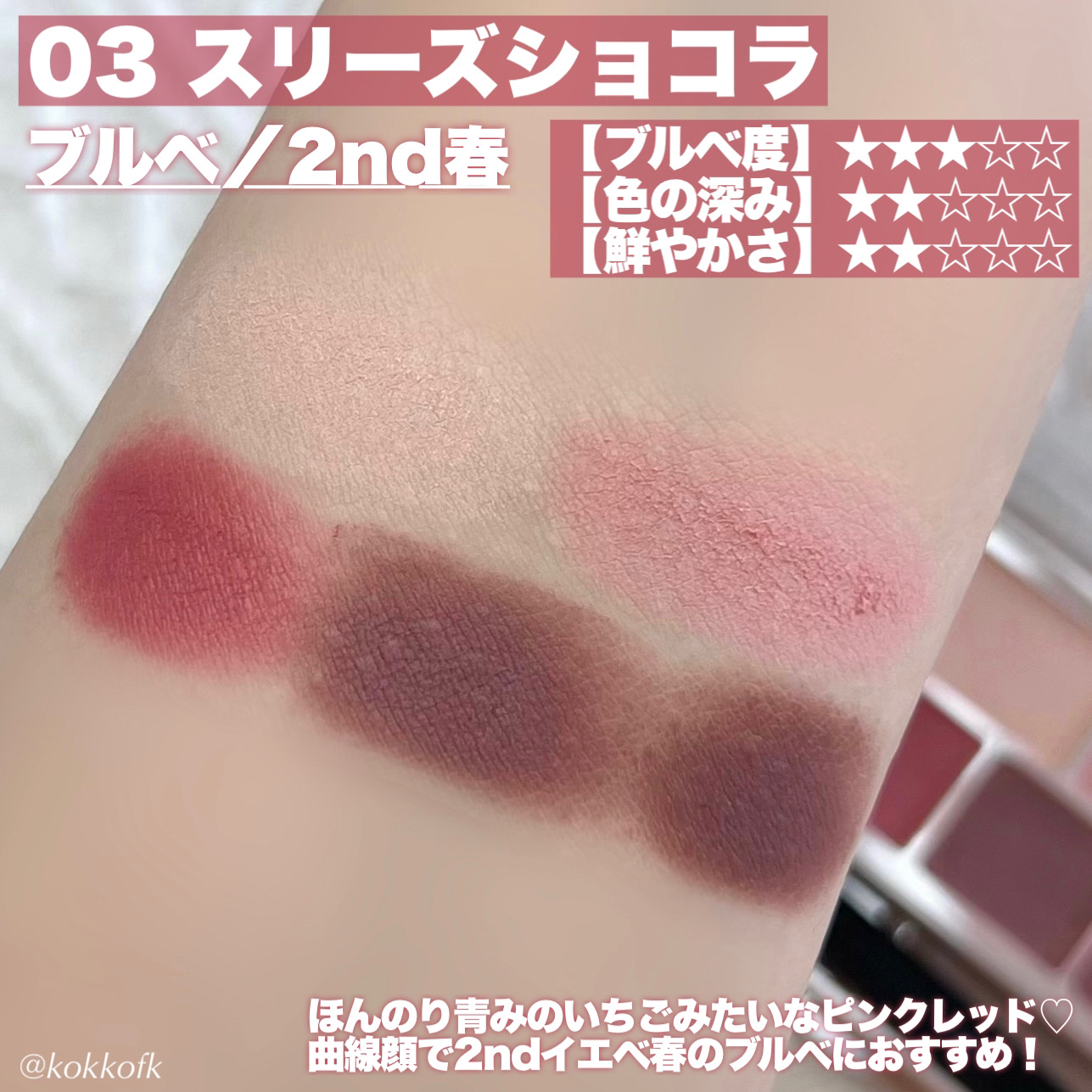 M03 ミルキーチェリコッタはイエベさんの秋メイクに使いやすいコーラルブラウン系のパレット。 発色が絶妙で¥1,078円なのは相変わらずすごい…!の一言です。 キャンメイク プティパレットアイズの新色🎨10月下旬から定番化予定だそう。