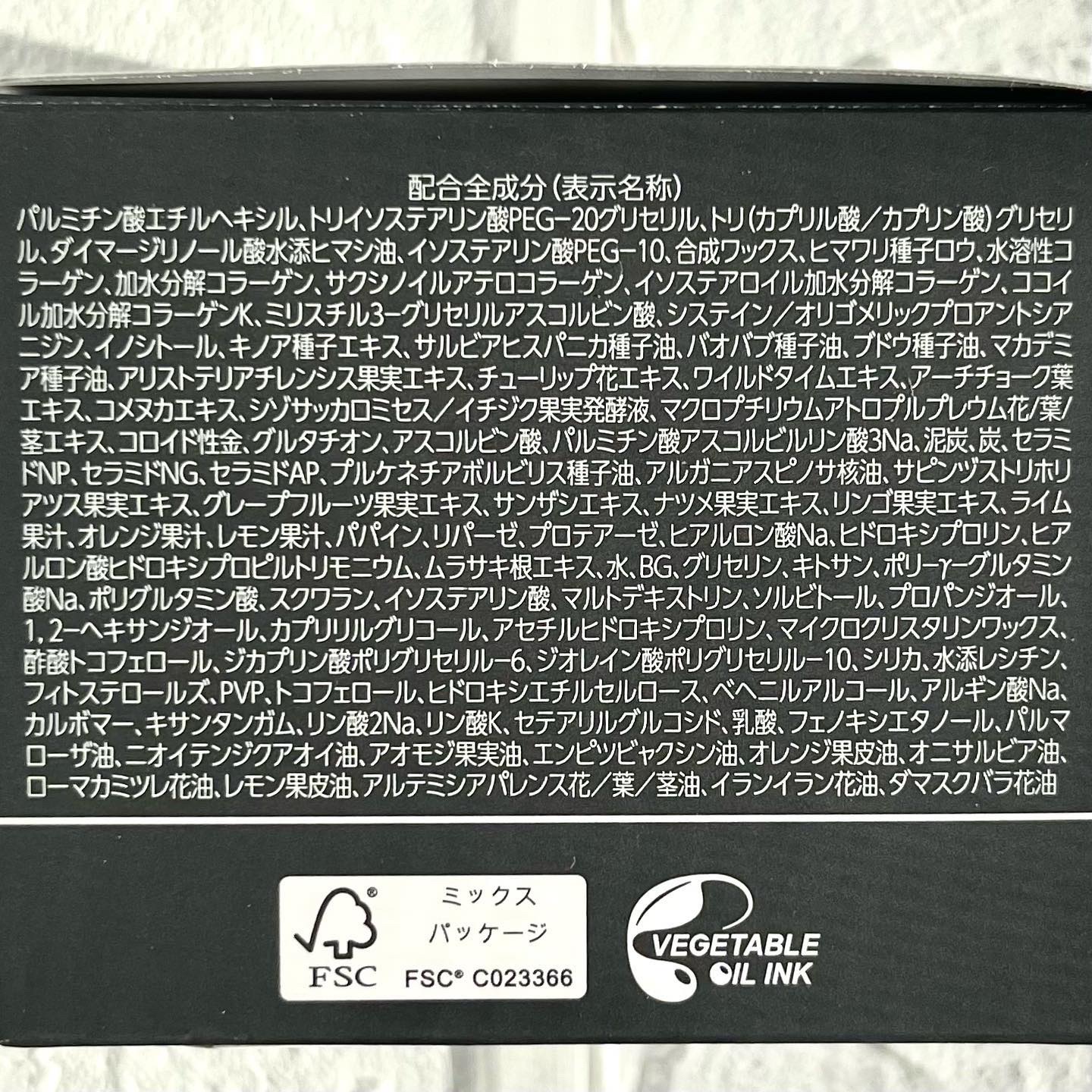 - <75g> パルミチン酸エチルヘキシル、トリイソステアリン酸PEG-20グリセリル、トリ(カプリル酸/カプリン酸)グリセリル、ダイマージリノール酸水添ヒマシ油、イソステアリン酸PEG-10、合成ワックス、ヒマワリ種子ロウ、水溶性コラーゲン、加水分解コラーゲン、サクシノイルアテロコラーゲン、イソステアロイル加水分解コラーゲン、ココイル加水分解コラーゲンK、ミリスチル3-グリセリルアスコルビン酸、システイン/オリゴメリックプロアントシアニジン、イノシトール、キノア種子エキス、サルビアヒスパニカ種子油、バオバブ種子油、ブドウ種子油、マカデミア種子油、アリストテリアチレンシス果実エキス、チューリップ花エキス、ワイルドタイムエキス、アーチチョーク葉エキス、コメヌカエキス、シゾサッカロミセス/イチジク果実発酵液、マクロプチリウムアトロプルプレウム花/葉/茎エキス、コロイド性金、グルタチオン、アスコルビン酸、パルミチン酸アスコルビルリン酸3Na、泥炭、炭、セラミドNP、セラミドNG、セラミドAP、プルケネチアボルビリス種子油、アルガニアスピノサ核油、サピンヅストリホリアツス果実エキス、グレープフルーツ果実エキス、サンザシエキス、ナツメ果実エキス、リンゴ果実エキス、ライム果汁、オレンジ果汁、レモン果汁、パパイン、リパーゼ、プロテアーゼ、ヒアルロン酸Na、ヒドロキシプロリン、ヒアルロン酸ヒドロキシプロピルトリモニウム、ムラサキ根エキス、水、BG、グリセリン、キトサン、ポリ-γ-グルタミン酸Na、ポリグルタミン酸、スクワラン、イソステアリン酸、マルトデキストリン、ソルビトール、プロパンジオール、1,2-ヘキサンジオール、カプリリルグリコール、アセチルヒドロキシプロリン、マイクロクリスタリンワックス、酢酸トコフェロール、ジカプリン酸ポリグリセリル-6、ジオレイン酸ポリグリセリル-10、シリカ、水添レシチン、フィトステロールズ、PVP、トコフェロールF、ヒドロキシエチルセルロース、ベヘニルアルコール、アルギン酸Na、カルボマー、キサンタンガム、リン酸2Na、リン酸K、セテアリルグルコシド、乳酸、フェノキシエタノール、パルマローザ油、ニオイテンジクアオイ油、アオモジ果実油、エンピツビャクシン油、オレンジ果皮油、オニサルビア油、ローマカミツレ花油、レモン果皮油、アルテミシアパレンス花/葉/茎油、イランイラン花油、ダマスクバラ花油 <クロミ 限定デザイン(75g)> パルミチン酸エチルヘキシル、トリイソステアリン酸PEG-20グリセリル、トリ(カプリル酸/カプリン酸)グリセリル、ダイマージリノール酸水添ヒマシ油、イソステアリン酸PEG-10、合成ワックス、ヒマワリ種子ロウ、水溶性コラーゲン、加水分解コラーゲン、サクシノイルアテロコラーゲン、イソステアロイル加水分解コラーゲン、ココイル加水分解コラーゲンK、ミリスチル3-グリセリルアスコルビン酸、システイン/オリゴメリックプロアントシアニジン、イノシトール、キノア種子エキス、サルビアヒスパニカ種子油、バオバブ種子油、ブドウ種子油、マカデミア種子油、アリストテリアチレンシス果実エキス、チューリップ花エキス、ワイルドタイムエキス、アーチチョーク葉エキス、コメヌカエキス、シゾサッカロミセス/イチジク果実発酵液、マクロプチリウムアトロプルプレウム花/葉/茎エキス、コロイド性金、グルタチオン、アスコルビン酸、パルミチン酸アスコルビルリン酸3Na、泥炭、炭、セラミドNP、セラミドNG、セラミドAP、プルケネチアボルビリス種子油、アルガニアスピノサ核油、サピンヅストリホリアツス果実エキス、グレープフルーツ果実エキス、サンザシエキス、ナツメ果実エキス、リンゴ果実エキス、ライム果汁、オレンジ果汁、レモン果汁、パパイン、リパーゼ、プロテアーゼ、ヒアルロン酸Na、ヒドロキシプロリン、ヒアルロン酸ヒドロキシプロピルトリモニウム、ムラサキ根エキス、水、BG、グリセリン、キトサン、ポリ-γ-グルタミン酸Na、ポリグルタミン酸、スクワラン、イソステアリン酸、マルトデキストリン、ソルビトール、プロパンジオール、1,2-ヘキサンジオール、カプリリルグリコール、アセチルヒドロキシプロリン、マイクロクリスタリンワックス、酢酸トコフェロール、ジカプリン酸ポリグリセリル-6、ジオレイン酸ポリグリセリル-10、シリカ、水添レシチン、フィトステロールズ、PVP、トコフェロールF、ヒドロキシエチルセルロース、ベヘニルアルコール、アルギン酸Na、カルボマー、キサンタンガム、リン酸2Na、リン酸K、セテアリルグルコシド、乳酸、フェノキシエタノール、パルマローザ油、ニオイテンジクアオイ油、アオモジ果実油、エンピツビャクシン油、オレンジ果皮油、オニサルビア油、ローマカミツレ花油、レモン果皮油、アルテミシアパレンス花/葉/茎油、イランイラン花油、ダマスクバラ花油 <75g ちいかわ 限定デザイン> パルミチン酸エチルヘキシル、トリイソステアリン酸PEG-20グリ