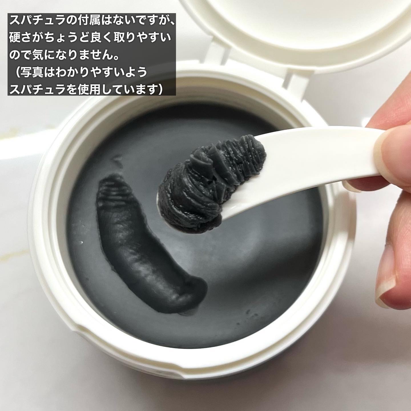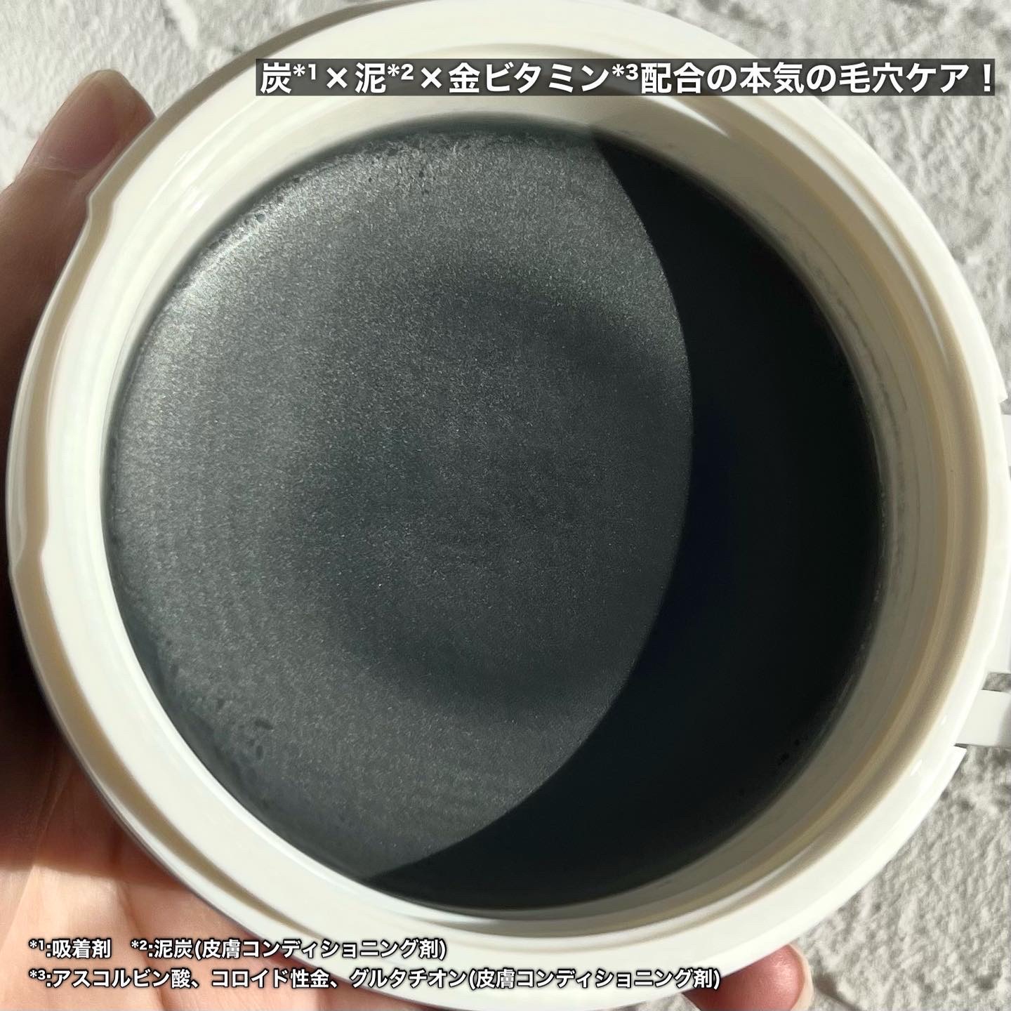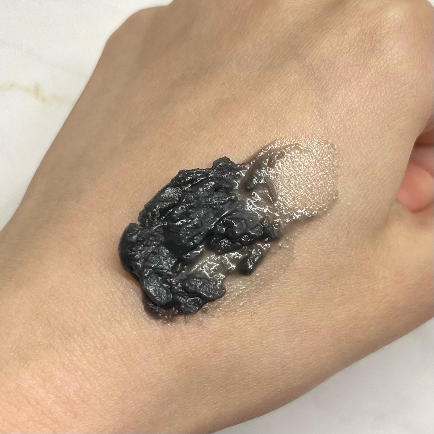 真っ黒な色がインパクトありますよね! 固そうに見えるけど手に取り馴染ませるとすぐ滑らかなクリーム状に変わります✨ ファンデやアイメイクとも馴染みよく優しく撫でるだけで馴染んでくれる💕 ダブル洗顔不要なのも時短できて嬉しいポイント❤️