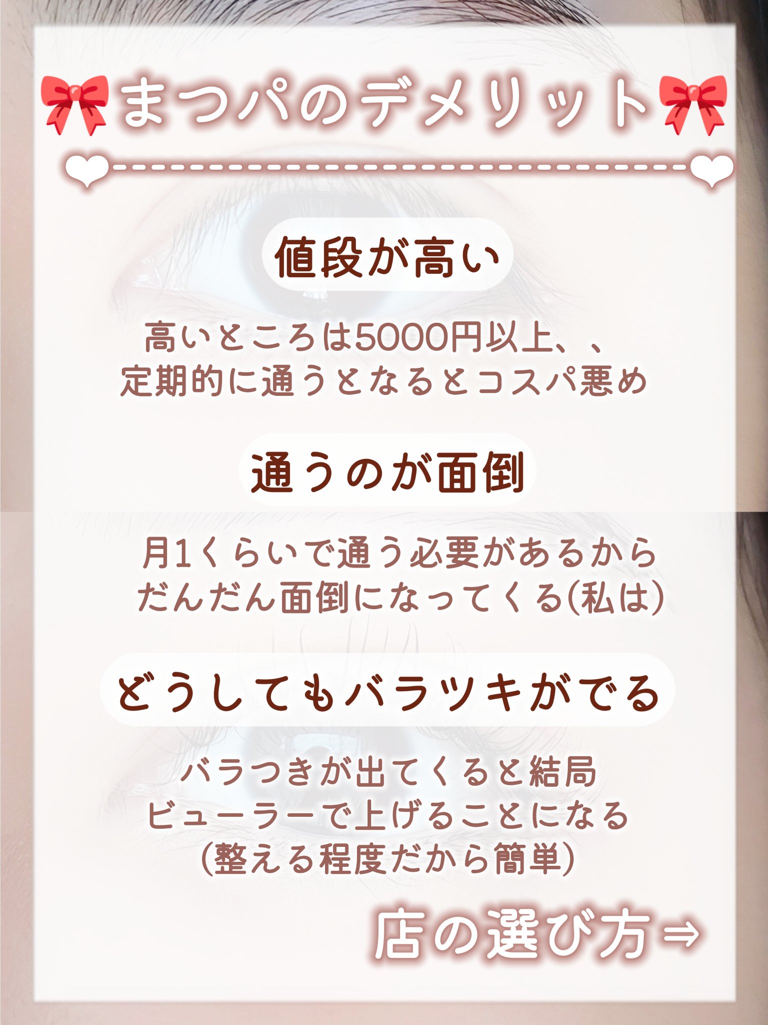 まつパを長持ちさせるコツ朝晩はまつ毛美容液を、昼間はマスカラ下地を塗ることを毎日継続することでまつパはこんなに長持ちしますただやはりまつパ直後の繊細な束間まつ毛は自力で再現できないので、大切な予定の前にまつパ入れるようにしています使っているま...