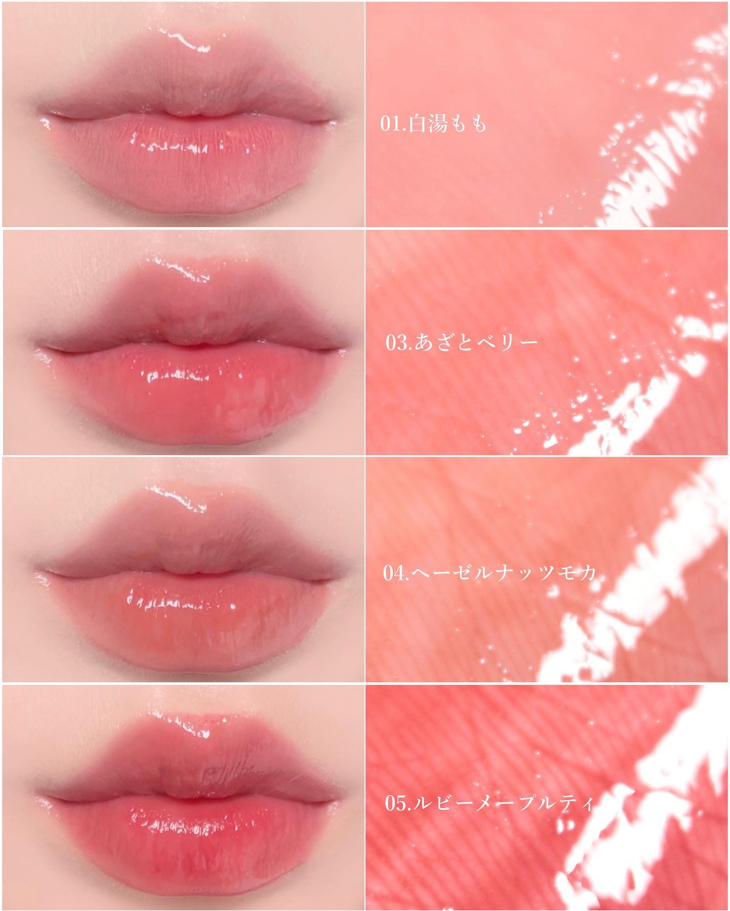 - <#01 白湯もも> ポリイソブテン、水添ポリイソブテン、ダイマージリノール酸ダイマージリノレイルビス(ベヘニル/イソステアリル/フィトステリル)、リンゴ酸ジイソステアリル、合成ワックス、ジメチルシリル化シリカ、イソステアリン酸、ジブチルラウロイルグルタミド、カプリリルグリコール、香料、酢酸トコフェロール、ジブチルエチルヘキサノイルグルタミド、エチルヘキシルグリセリン、トリイソステアリン酸イソプロピルチタン、トコフェロール、酸化チタン、酸化鉄、赤202 <#03 あざとベリー> ポリイソブテン、水添ポリイソブテン、ダイマージリノール酸ダイマージリノレイルビス(ベヘニル/イソステアリル/フィトステリル)、リンゴ酸ジイソステアリル、合成ワックス、ジメチルシリル化シリカ、イソステアリン酸、ジブチルラウロイルグルタミド、カプリリルグリコール、香料、酢酸トコフェロール、ジブチルエチルヘキサノイルグルタミド、エチルヘキシルグリセリン、トリイソステアリン酸イソプロピルチタン、トコフェロール、酸化鉄、酸化チタン、赤202、黄4、青1 <#04 ヘーゼルナッツモカ> ポリイソブテン、水添ポリイソブテン、ダイマージリノール酸ダイマージリノレイルビス(ベヘニル/イソステアリル/フィトステリル)、リンゴ酸ジイソステアリル、合成ワックス、ジメチルシリル化シリカ、イソステアリン酸、ジブチルラウロイルグルタミド、カプリリルグリコール、酢酸トコフェロール、香料、ジブチルエチルヘキサノイルグルタミド、エチルヘキシルグリセリン、トコフェロール、酸化鉄、酸化チタン、青1、赤202 <#05 ルビーメープルティー> ポリイソブテン、水添ポリイソブテン、ダイマージリノール酸ダイマージリノレイルビス(ベヘニル/イソステアリル/フィトステリル)、リンゴ酸ジイソステアリル、合成ワックス、ジメチルシリル化シリカ、イソステアリン酸、ジブチルラウロイルグルタミド、カプリリルグリコール、酢酸トコフェロール、香料、ジブチルエチルヘキサノイルグルタミド、エチルヘキシルグリセリン、トコフェロール、酸化鉄、赤202、青1