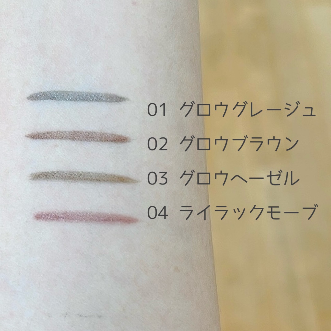 - <01 グロウグレージュ> 水、BG、アクリレーツコポリマーアンモニウム、アルミナ、結晶セルロース、キサンタンガム、ヒアルロン酸Na、ベヘネス-30、カプリリルグリコール、セルロースガム、ポリグリセリル-3ジシロキサンジメチコン、酸化スズ、AMP、クエン酸、セスキイソステアリン酸ソルビタン、トリイソステアリン酸ポリグリセリル-2、ミリスチン酸ポリグリセリル-10、ステアリン酸ポリグリセリル-10、トリオレイン酸ソルビタン、トコフェロール、フェノキシエタノール、メチルパラベン、エチルパラベン、酸化チタン、カーボンブラック <02 グロウブラウン> 水、BG、アクリレーツコポリマーアンモニウム、アルミナ、結晶セルロース、キサンタンガム、ヒアルロン酸Na、ベヘネス-30、カプリリルグリコール、セルロースガム、ポリグリセリル-3ジシロキサンジメチコン、酸化スズ、クエン酸、AMP、セスキイソステアリン酸ソルビタン、トリイソステアリン酸ポリグリセリル-2、ミリスチン酸ポリグリセリル-10、ステアリン酸ポリグリセリル-10、トリオレイン酸ソルビタン、トコフェロール、フェノキシエタノール、メチルパラベン、エチルパラベン、酸化鉄、合成金雲母、酸化チタン、カーボンブラック、赤226 <03 グロウヘーゼル> 水、BG、アクリレーツコポリマーアンモニウム、結晶セルロース、キサンタンガム、ヒアルロン酸Na、アルミナ、ベヘネス-30、カプリリルグリコール、セルロースガム、ポリグリセリル-3ジシロキサンジメチコン、酸化スズ、AMP、クエン酸、セスキイソステアリン酸ソルビタン、トリイソステアリン酸ポリグリセリル-2、ミリスチン酸ポリグリセリル-10、ステアリン酸ポリグリセリル-10、トリオレイン酸ソルビタン、トコフェロール、フェノキシエタノール、メチルパラベン、エチルパラベン、酸化鉄、合成金雲母、酸化チタン、カーボンブラック、マイカ <05 ブラウンシェイド> 水、アクリレーツコポリマーアンモニウム、BG、1,2-ヘキサンジオール、アルミナ、結晶セルロース、キサンタンガム、ヒアルロン酸Na、ベヘネス-30、セルロースガム、ポリグリセリル-3ジシロキサンジメチコン、水酸化Al、酸化スズ、クエン酸、AMP、セスキイソステアリン酸ソルビタン、トリイソステアリン酸ポリグリセリル-2、ミリスチン酸ポリグリセリル-10、ステアリン酸ポリグリセリル-10、トリオレイン酸ソルビタン、トコフェロール、フェノキシエタノール、メチルパラベン、エチルパラベン、酸化チタン、酸化鉄、カーボンブラック、マイカ <06 拡張極薄ピンク> 水、アクリレーツコポリマーアンモニウム、BG、1,2-ヘキサンジオール、アルミナ、結晶セルロース、キサンタンガム、ヒアルロン酸Na、ベヘネス-30、セルロースガム、ポリグリセリル-3ジシロキサンジメチコン、酸化スズ、クエン酸、AMP、セスキイソステアリン酸ソルビタン、トリイソステアリン酸ポリグリセリル-2、ミリスチン酸ポリグリセリル-10、ステアリン酸ポリグリセリル-10、トリオレイン酸ソルビタン、トコフェロール、フェノキシエタノール、メチルパラベン、エチルパラベン、酸化鉄、酸化チタン、マイカ <07 トイプーブラウン> 水、アクリレーツコポリマーアンモニウム、BG、1,2-ヘキサンジオール、結晶セルロース、キサンタンガム、ヒアルロン酸Na、ベヘネス-30、アルミナ、水酸化Al、ポリグリセリル-3ジシロキサンジメチコン、セルロースガム、クエン酸、AMP、酸化スズ、セスキイソステアリン酸ソルビタン、トリイソステアリン酸ポリグリセリル-2、ミリスチン酸ポリグリセリル-10、ステアリン酸ポリグリセリル-10、トリオレイン酸ソルビタン、トコフェロール、フェノキシエタノール、メチルパラベン、エチルパラベン、酸化鉄、酸化チタン、カーボンブラック、マイカ <04 ライラックモーブ> 水、アクリレーツコポリマーアンモニウム、BG、1,2-ヘキサンジオール、アルミナ、結晶セルロース、キサンタンガム、ヒアルロン酸Na、ベヘネス-30、シリカ、セルロースガム、ポリグリセリル-3ジシロキサンジメチコン、水酸化Al、酸化スズ、クエン酸、AMP、セスキイソステアリン酸ソルビタン、トリイソステアリン酸ポリグリセリル-2、ミリスチン酸ポリグリセリル-10、ステアリン酸ポリグリセリル-10、トリオレイン酸ソルビタン、トコフェロール、フェノキシエタノール、メチルパラベン、エチルパラベン、酸化チタン、酸化鉄、マイカ、カーボンブラック、赤226、青1