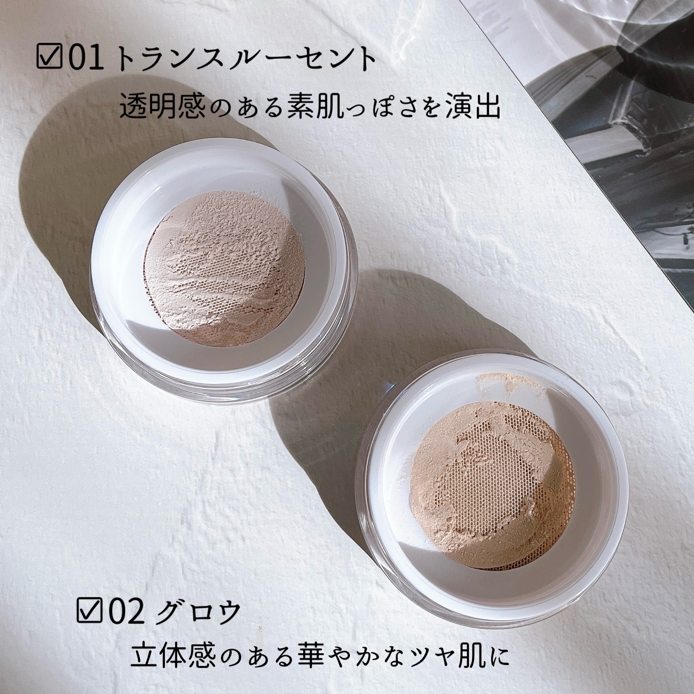 - 肌にとけこむようになじむ軽いつけ心地 なりたい肌の質感を演出するフェイスパウダー 軽いつけ心地で、肌をふんわり包み込むルースタイプのフェイスパウダーです。 白浮き感や粉っぽさがなく、肌にとけこむようになじみます。 なりたい肌の質感でチョイスできる3 種で、自由自在に仕上がりの印象をコントロールします。