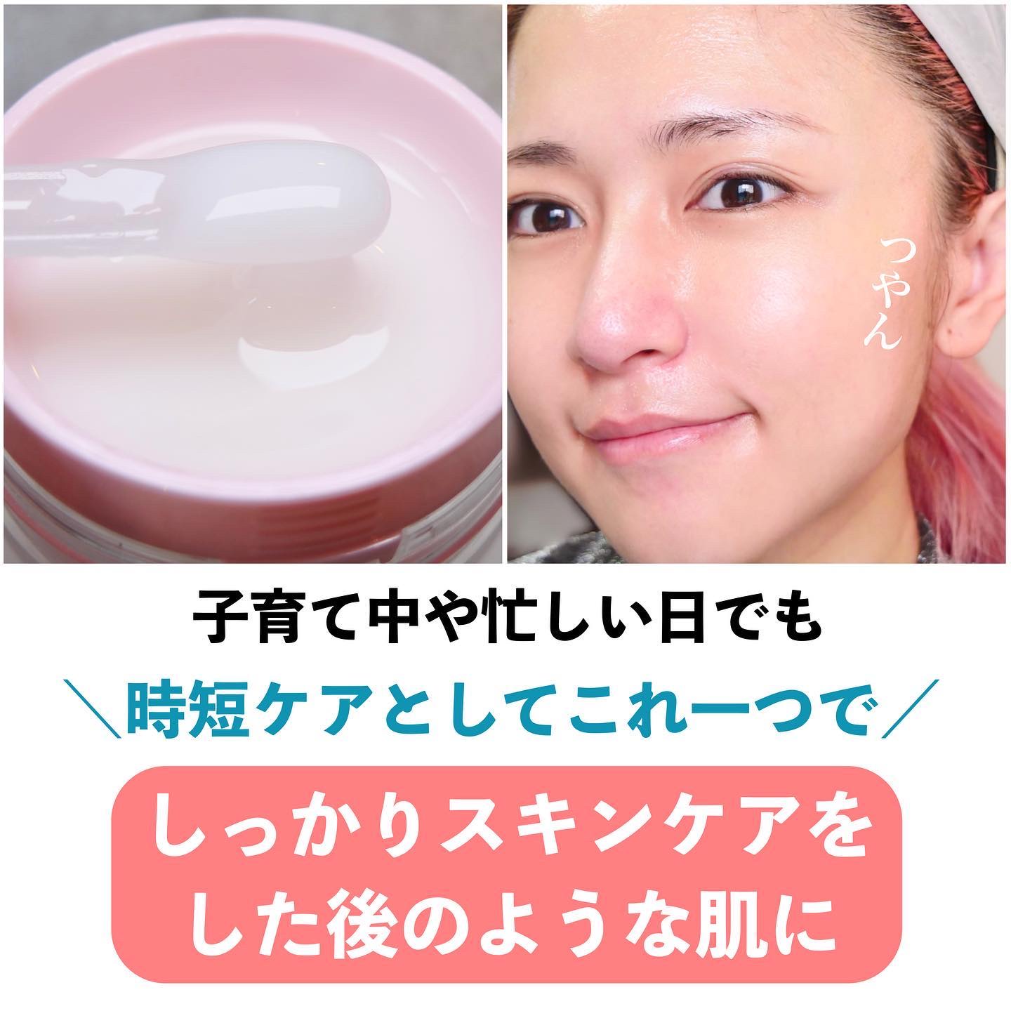 忙しい時はオールインワンとして、しっかり保湿したい時は乳液、クリームの代わりとして使えるジェルです。 抗炎症(肌あれ・あれ性)、シミ予防(メラニンの生成を抑え、シミ・そばかすを防ぐ)の効果も期待できるようになったようです。 テクスチャーはたしかにジェルです。ぷるんとしてて水分感たっぷりです。お肌に塗ると密着感があります。