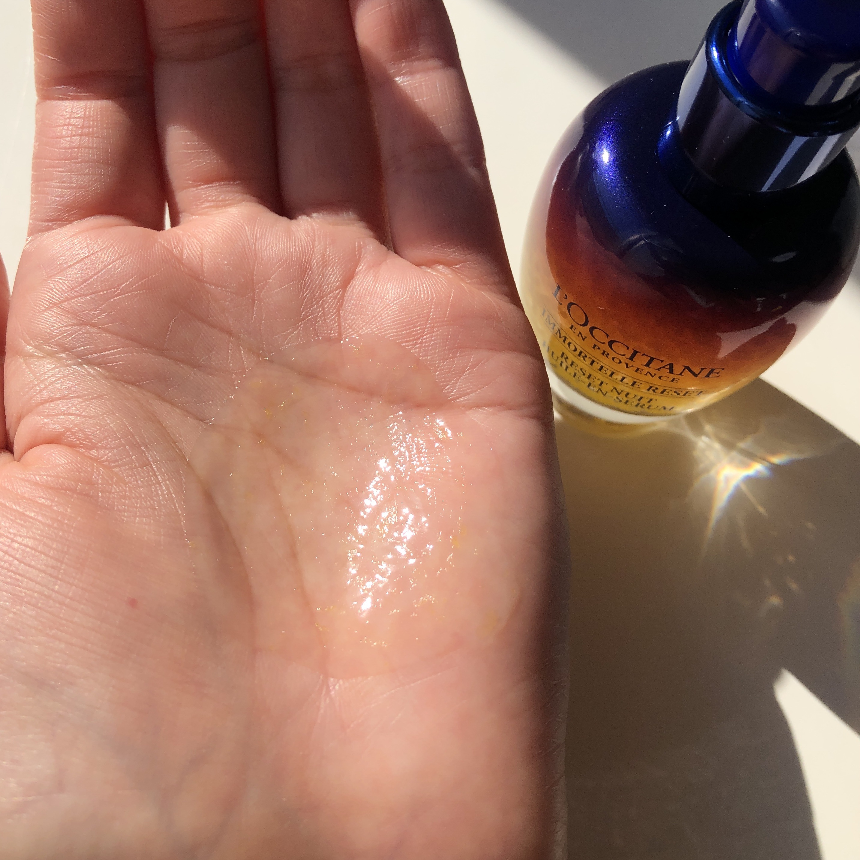 ロクシタンの人気美容液がリニューアル! ボトルの中で輝く黄金のオーガニックのイモーテルエッセンシャルオイルカプセル*使うたびにはじけて新鮮な美容成分を届けてくれるんです。 肌に触れた瞬間、ふわっと広がるイモーテルの香りに贅沢なナイトケアタイムを過ごしているように感じます。 この1本で簡単にプロ級のスキンケアができちゃいます!!