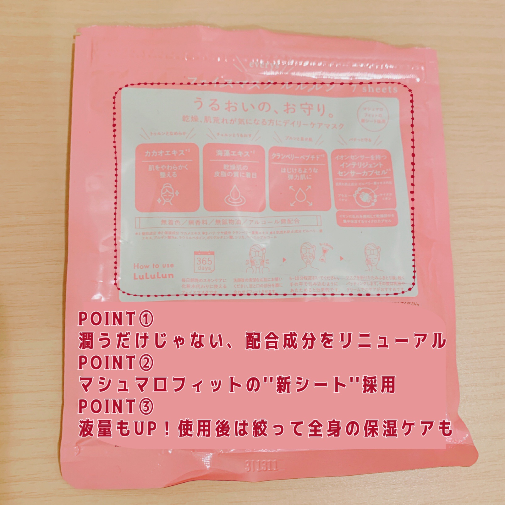 日々の生活で負担をかけてしまったお肌に、たくさんの「幸福感」を届けたくて、「ごきげん」な使い心地にこだわった\ルルルン ピュアエブリーズ/ マシュマロのようにふんわり肌に密着するシート♡ ルルルンの\化粧水フェイスマスク/は、365日朝晩化粧水の代わりに使用できるマスクで、愛用してます♡ ヒタヒタの美容液で、パック後はぷるぷるに潤います♡ 毎日使いたくなるパックです♡