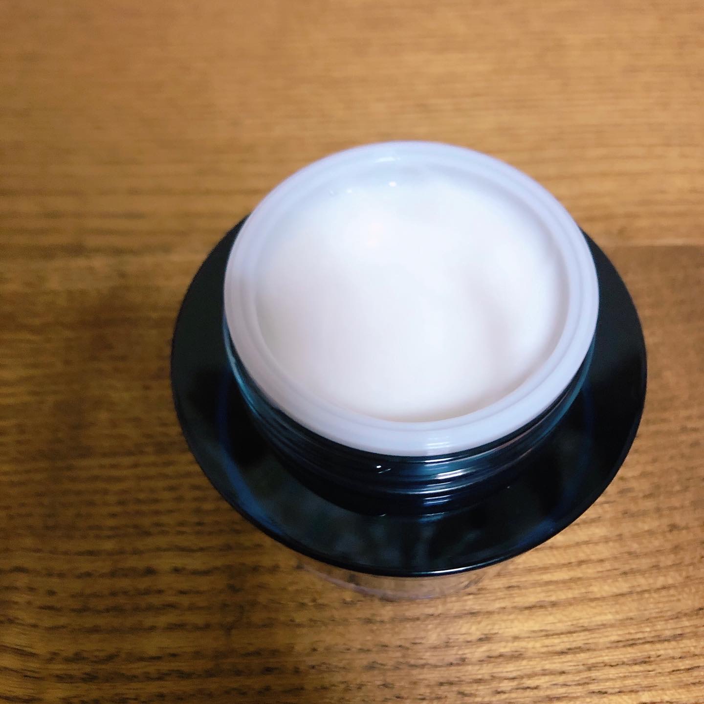 ディープブルーにゴールドの大人っぽいパッケージに入ったシワ改善、シミ予防のwの機能を兼ね備えたオールインワンクリームは、ゆるっとした乳液みたいな白いテクスチャーです。 みずみずしくしっとりするような使い心地で、香りは付いていないので、目元や鼻、口まわり、首までスキンケアしています。 50代の私が使っても手放したくなくなるような土台からのスキンケア。