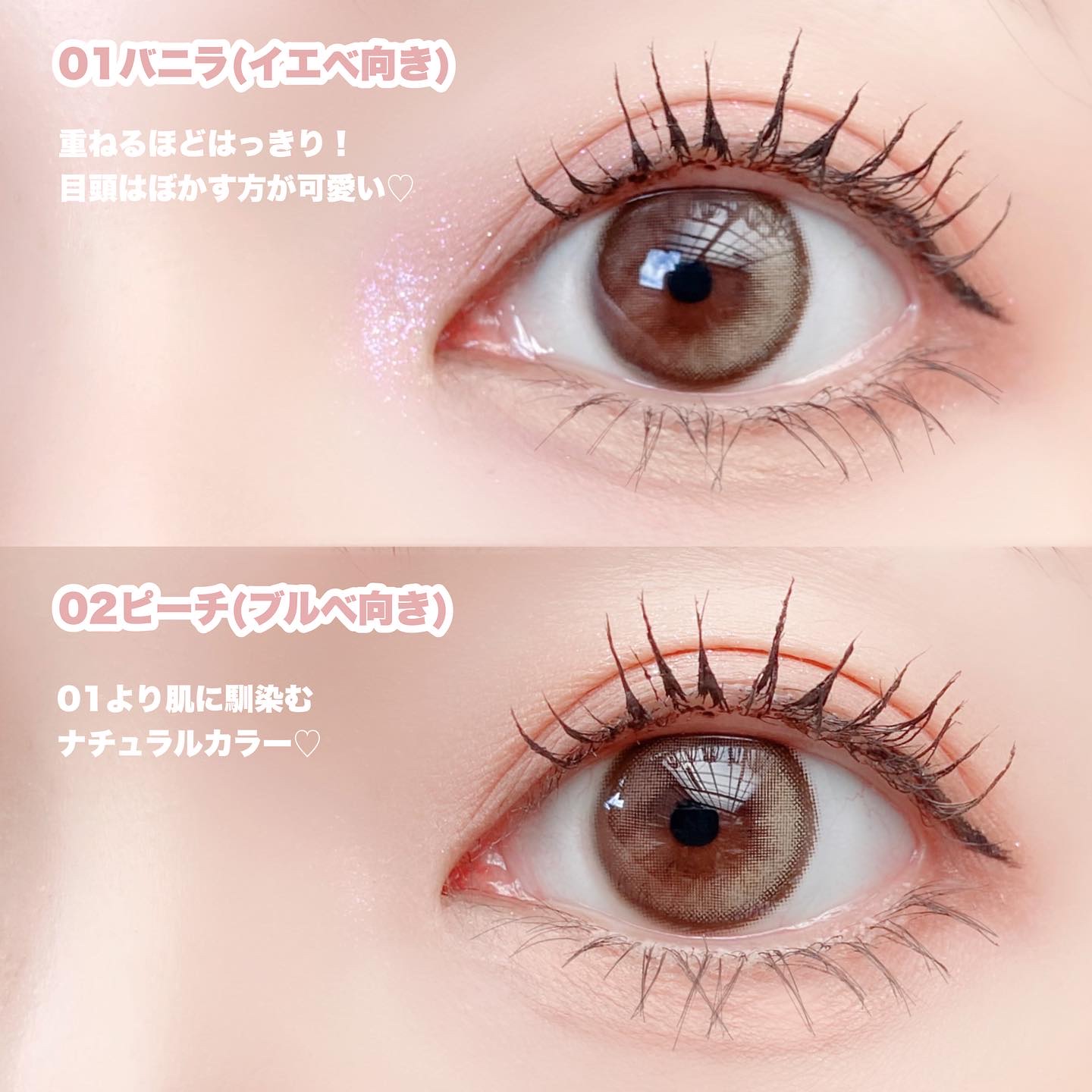 カラーは全体的に淡くふわっとした色づき。 アイライナーひいてマスカラしたら目元に透明感出ます...!! 二重も大きく見えるし まつ毛もなんだか長く見える! ニュアンスカラーで陰影つけてるから ボヤけないとこがまたいい... 白湯メイクは薄いベージュだけど ピンク版白湯メイクならこれでしょ。 ラメなしラメありどちらも可愛すぎて どっちにするか毎回悩む🥹 チークカラーはまぶた・チーク兼用 こちらもほわんとした色味。 バズってるマスカラも悩んでるけど フーミーとミゼルエディ気に入ってて迷い中。 マスカラ下地なんだけどこれ単体で 使いたくなる可愛さで主に単体で使ってる♥