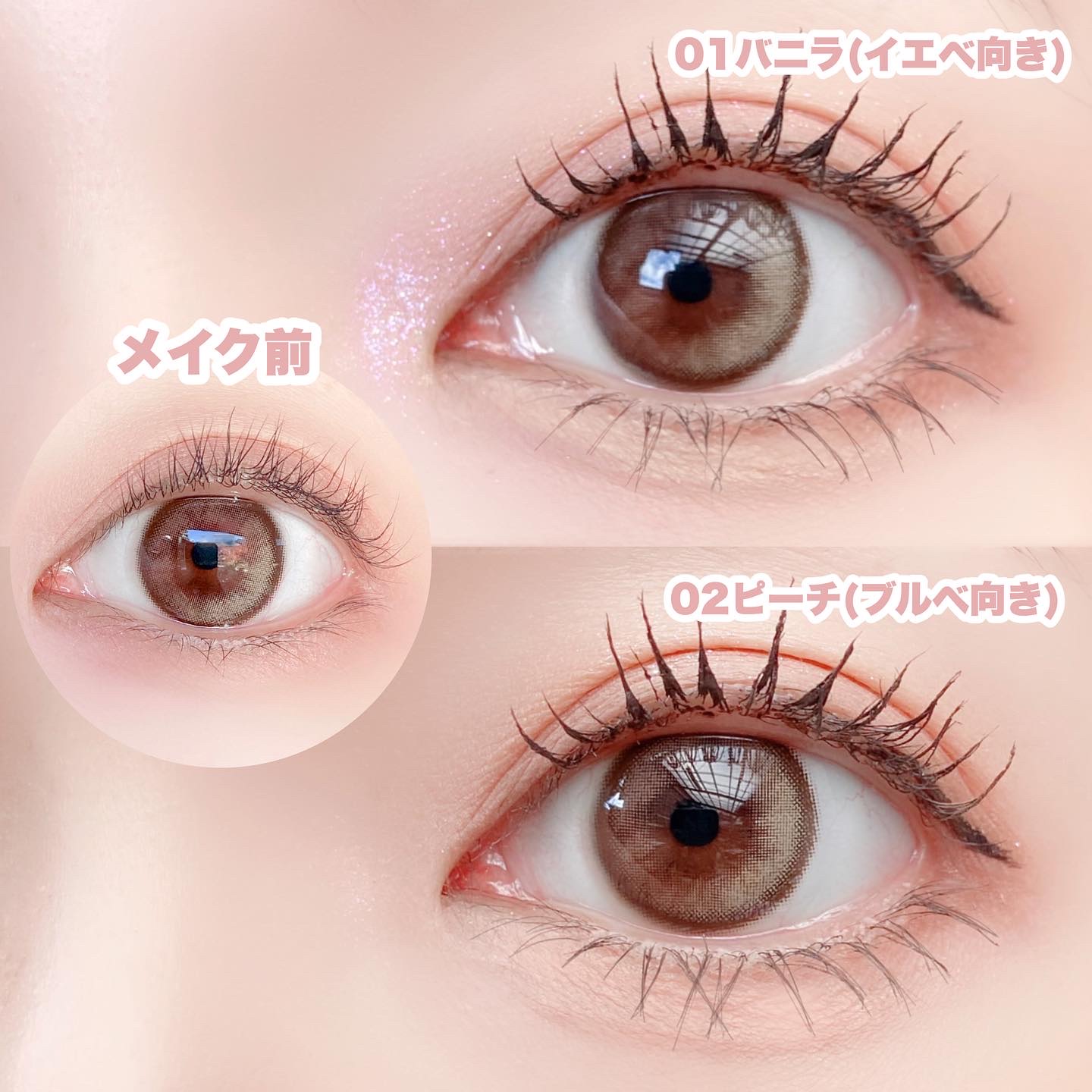 キャンマジ新色出たよ💕 馴染む立体感がヨジャドルっぽくて新色の中で1番よく使ってるカラー。 どんなメイクとも相性がいいので使いやすいです! 着色直径よりも体感大きめに感じるのも🙆🏻♀️ オレンジ感の少ないブラウンだから口紅やチーク次第で幼くも大人っぽくもなれる。 浮かない太めフチで可愛いさ溢れてます✨ レンズ単体だとめちゃくちゃピンクなのかなと思ったけど着けたら馴染みました💕 パキッとしないのでほわほわしたピンクが好きな人やラメメイクが好きな人にもおすすめ◎