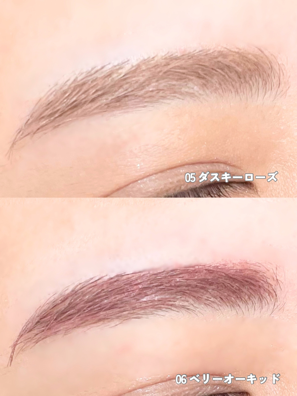 自眉が濃いのですが、さっと抜け感のある色づき方をしてくれるハンオールブロウカラ。 黒髪に近い私のお気に入りは01 グレーストープと05 ダスキーローズ。 06 ベリーオーキッドは他の色に比べて彩度が高い赤なので、ナチュラルメイク派の方より盛るメイクの方に合ってそうです。