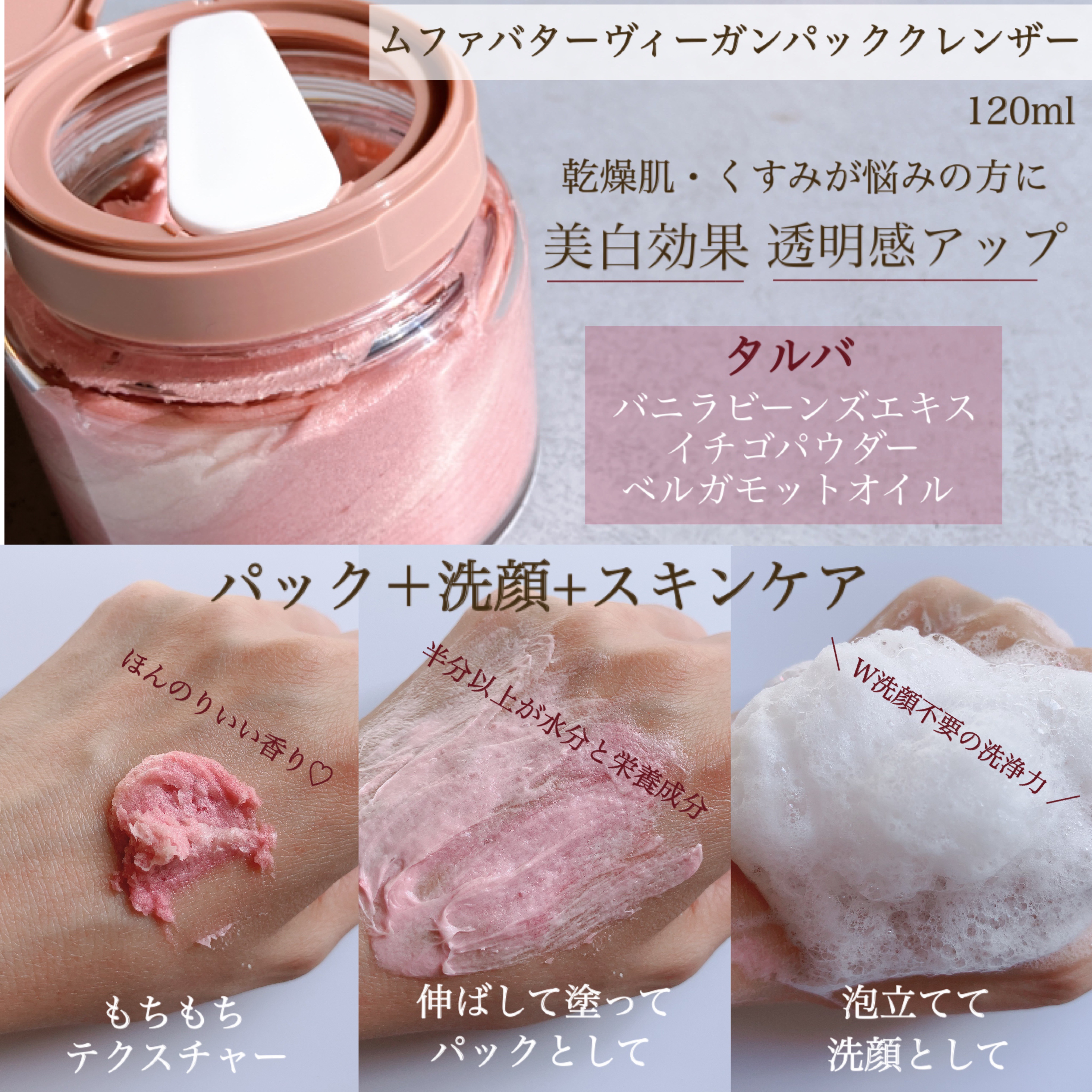 - 独自開発のホイップフォーミュラが特徴、パック、クレンジング、スキンケアを一気にできるヴィーガン洗顔フォーム