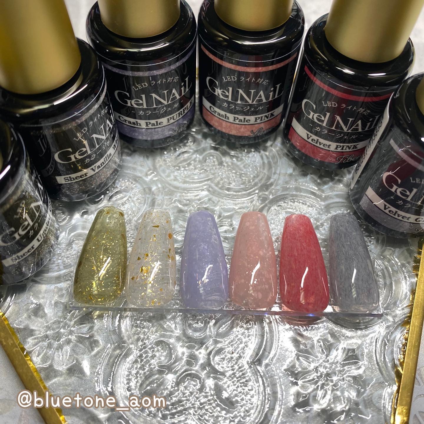 ベースカラーを塗ったらノンワイプトップを塗って硬化します。 クリア→ミラー感はあるけど、発色はそこまで濃くないのでガッツリシルバーを求めてる人は物足りないかも🤔 ホワイト→キレイにシルバーになりました! ミルキーホワイト→シャンパンゴールドみたいな落ち着いたゴールドっぽくなりました😳 ブラック→キレイにシルバーに!やっぱりブラックとシルバーは映えますね🤝ギラギラです! パウダーの粒子はちょっと大きめなのでちょっと不安でしたが擦ってみるとキレイにミラーになりました! ベースカラーで見え方も変わるので色々試しても面白いかもです🥰