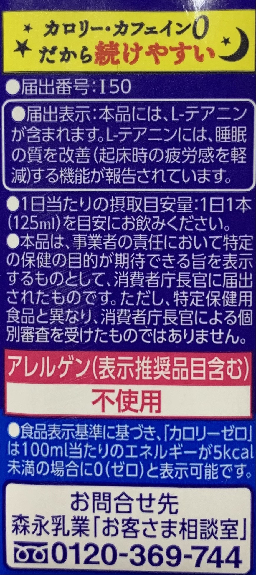 森永 睡眠改善100円くらいで購入できます♪睡眠の質を改善(起床時の疲労感を軽減)する機能性表示食品です。機能性関与成分L-テアニンを200mg配合しています。カロリー・糖類0で、おやすみ前に飲みやすいスッキリとしたライチ味のドリンクです。こ...