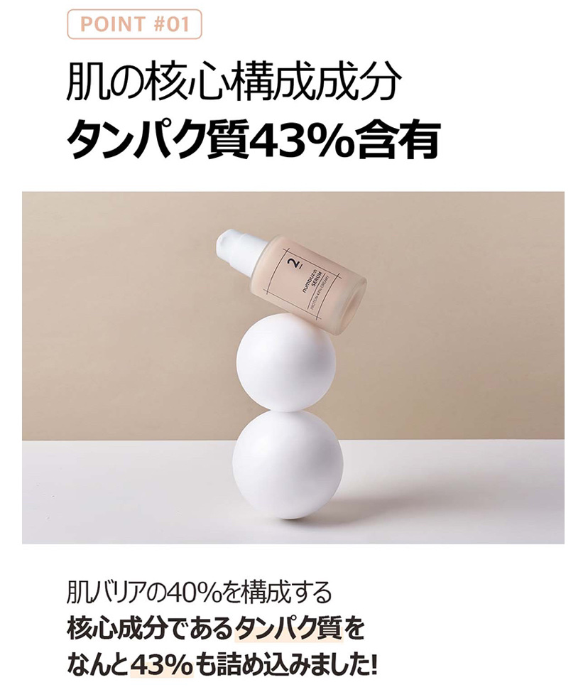 - 塗り重ねるごとに肌を守る!タンパク質でコーティングしたかのように薄いクリームテクスチャーが積み重ねられ、肌の核心を支えてくれるクリームinセラム