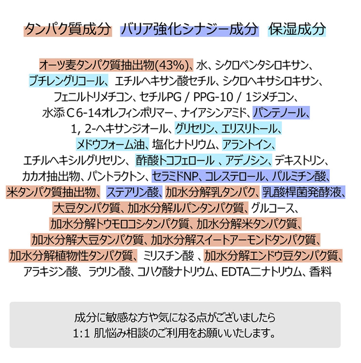 ナンバーズイン2番 高密度タンパク質クリームセラム(Qoo10:3300円) ✅ 注目成分:コアタンパク質43% オーツ麦と10種類のタンパク質が加わったコアタンパク質成分が健康な肌に導く! 美容液とクリームの間のような密着力のあるもったりしたテクスチャーで水分・弾力・保湿感を感じるのにベタつかないから使いやすい!