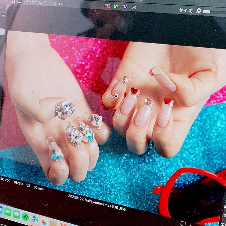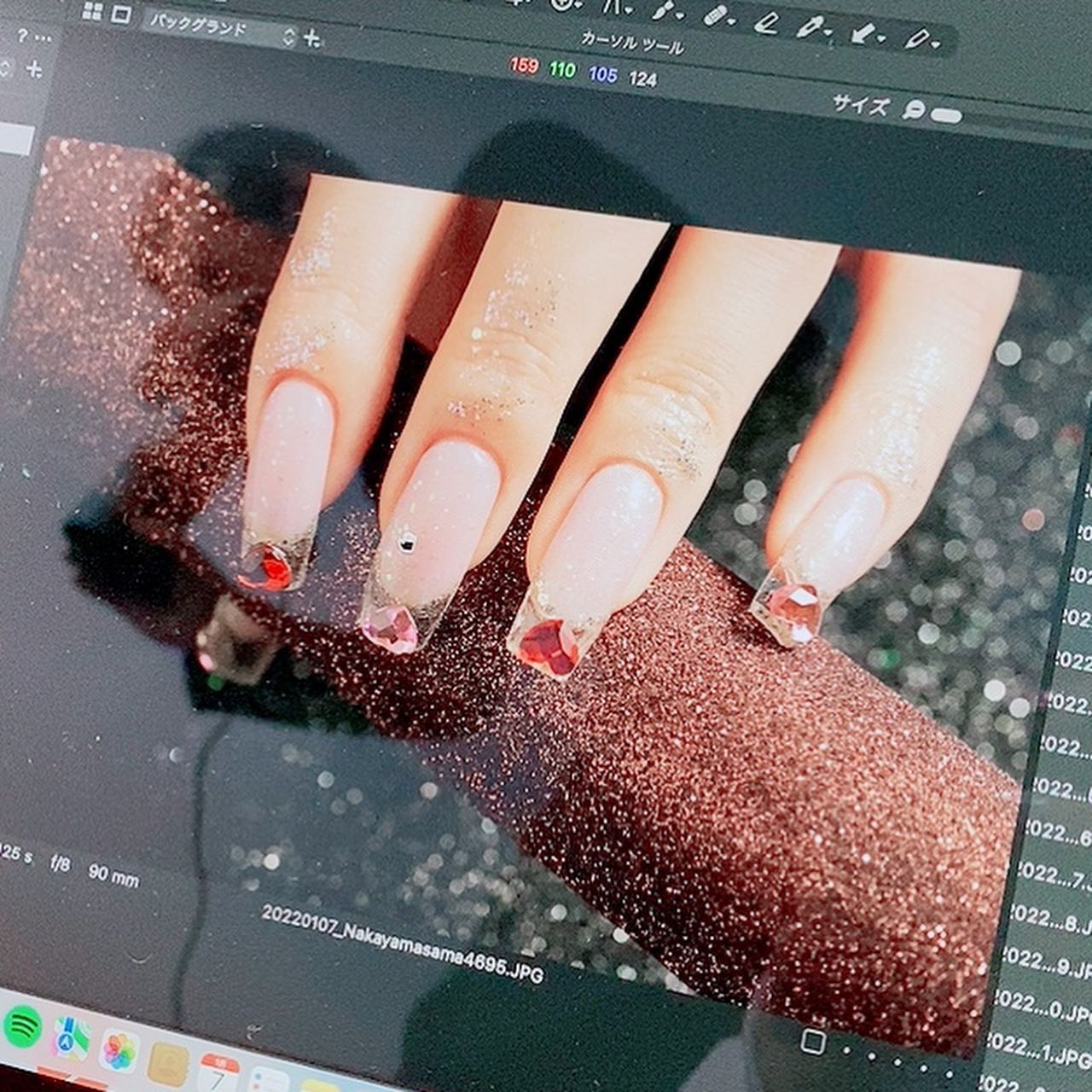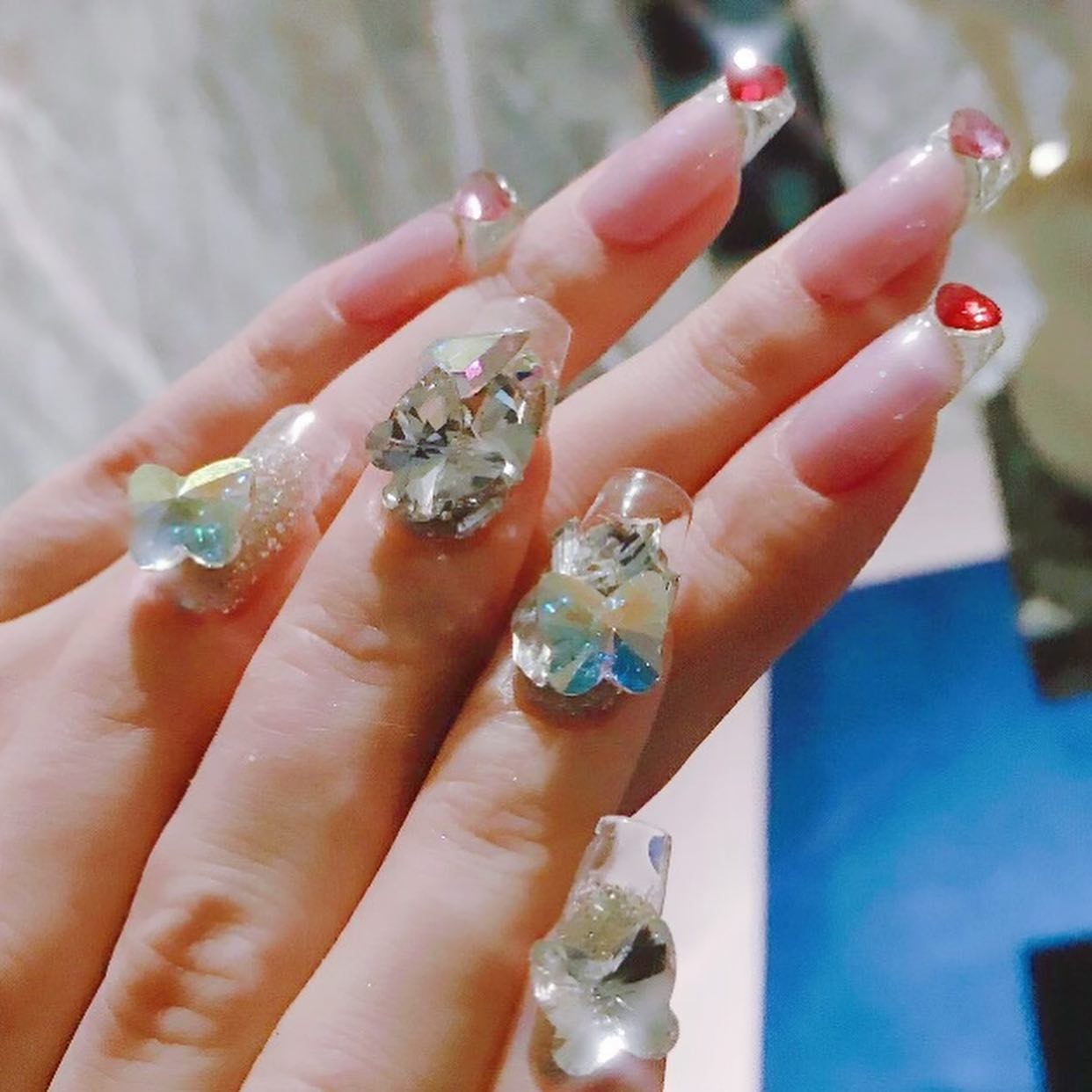 白いマグネットジェル(ちょっとグレーみも感じる)をグラデーション+マグネットフレンチにしました。 左手薬指はキルティングのツリー🎄 好みのカラーにするために2色を混ぜて三角を描き、1mmホロを配置。 親指のスノードームの方が上手くできた🙌 ホロの光り方のおかげか、ものすごく立体感のあるスノードームになりました☃️