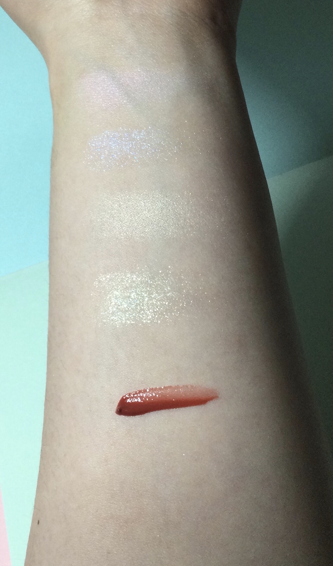 MB マーキュリーブルーから始まり、やはり全色欲しくなります🌟 色味は、MB マーキュリーブルーとML ムーンライト VG ヴィーナスゴールドとGP ギャラクシーピンクがそれぞれ似た色味になります。 ラメ感、パール感ともに強めなハイライト セザンヌパールグローハイライターに似た感じの仕上がりです。 パケが可愛すぎてコスメ棚に飾っておきます。