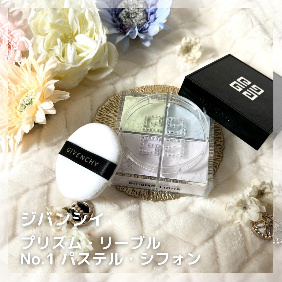 繊細なラメが肌に華やかさをプラス✨ No.01 パステル・シフォンはパール感と、4色の中でもグリーンの色が効いて肌色の補正力があると思う💚 朝塗ったときの透明感がお直ししてないのに夜まで続いてる👀 さらさらすぎずしっとりしすぎないバランスのある仕上がりを保つから No.01 パステル・シフォンがマットなメイクとも相性がいいツヤを少し残したベースの仕上げに最適で推しです❣️