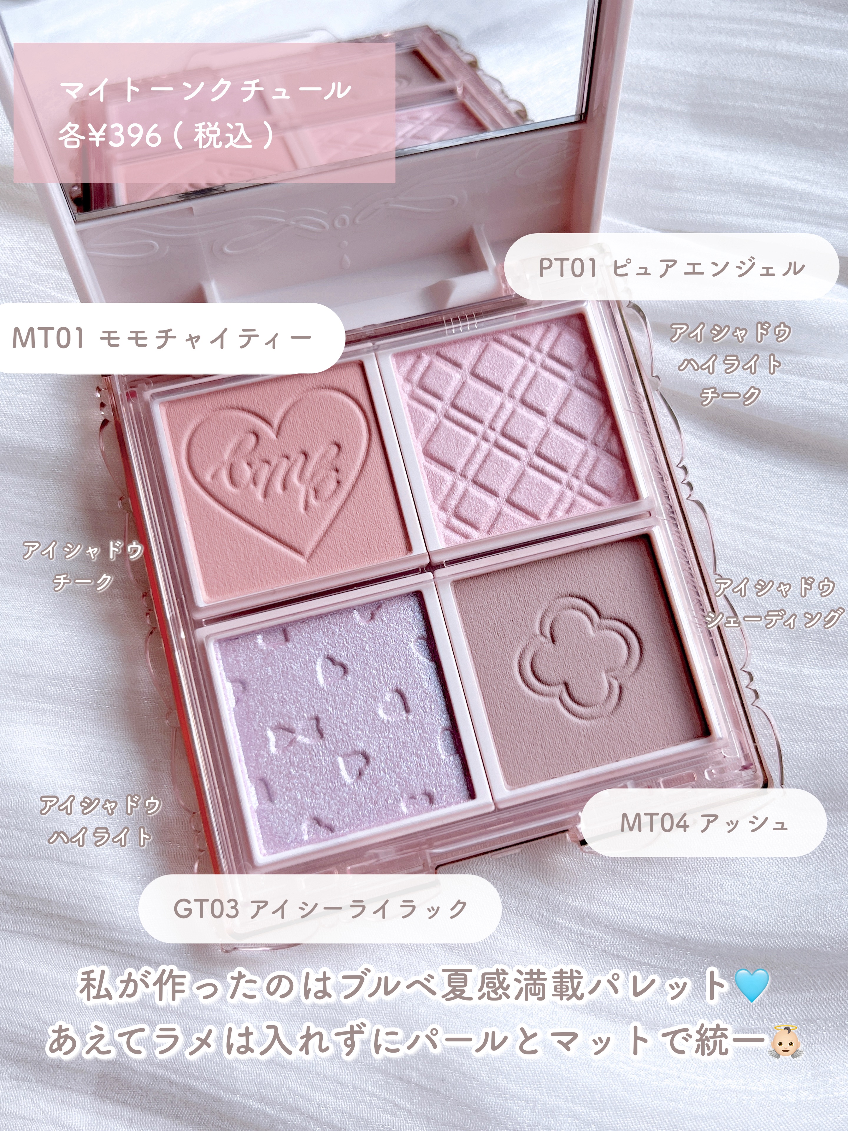 キャンメイクのマイトーンクチュールです!これは自分で色を選んで購入し、カスタムできるパレットとなっています🤍 私はブルベ夏なので、ブルベ夏に似合いそうなカラーを詰め込みました🫧 自分のお気に入り色やよく使う色だけをまとめて持ち運べるので旅行などの際にも便利で気に入っています!