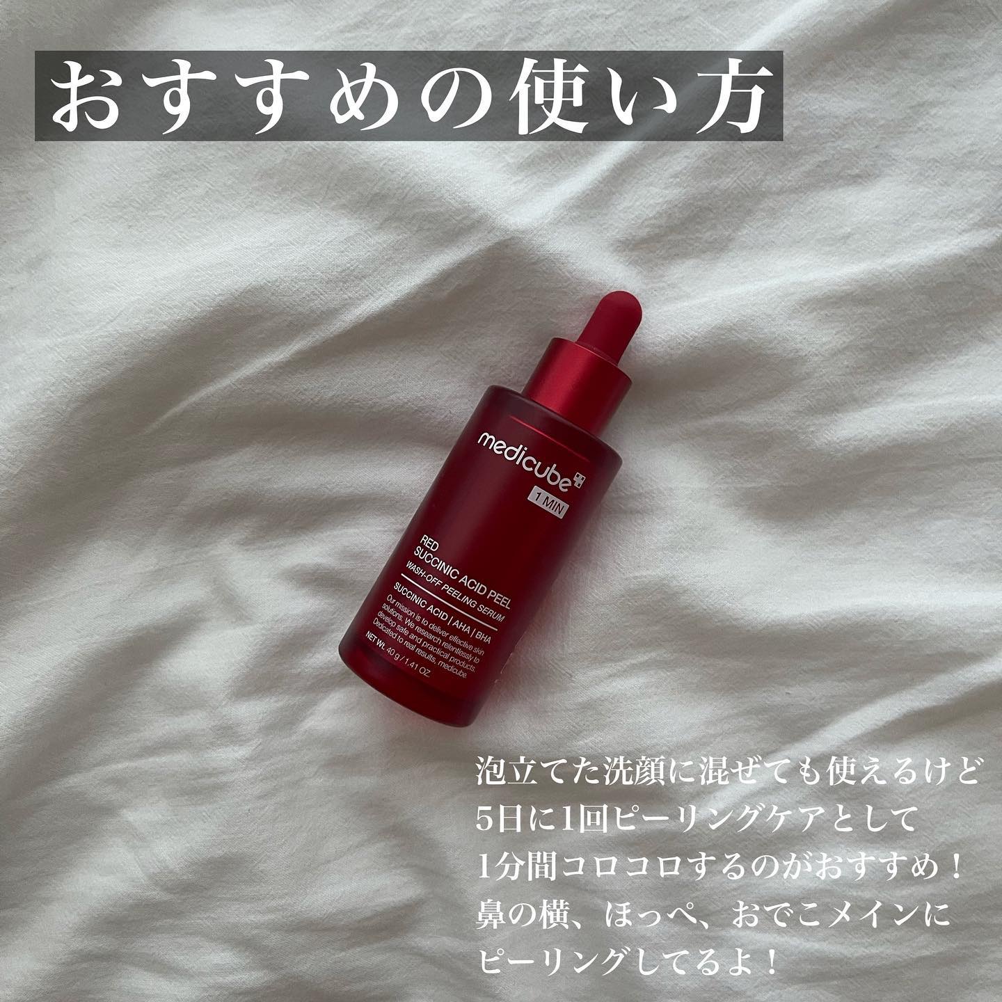 まだ3回くらいしか使ってないんですが、使う前と使う後では、ツルツルさが本当に違う! 化粧水や美容液の浸透も良くなった感じもしてます🥹 肝心のニキビについてですが、ちょうどいい感じのニキビができたので使ってみたら、悪化することなく綺麗に治りつつって感じです🙆♂️ いつもだったら、割と赤く炎症することが多いんだけど、今回は赤みが増すことはなかったよ!! メディキューブって釣り広告多いイメージであまり買ってこなかったんだけど、これは釣りとか関係なく本当に推せるコスメでした🫰🏻🥺