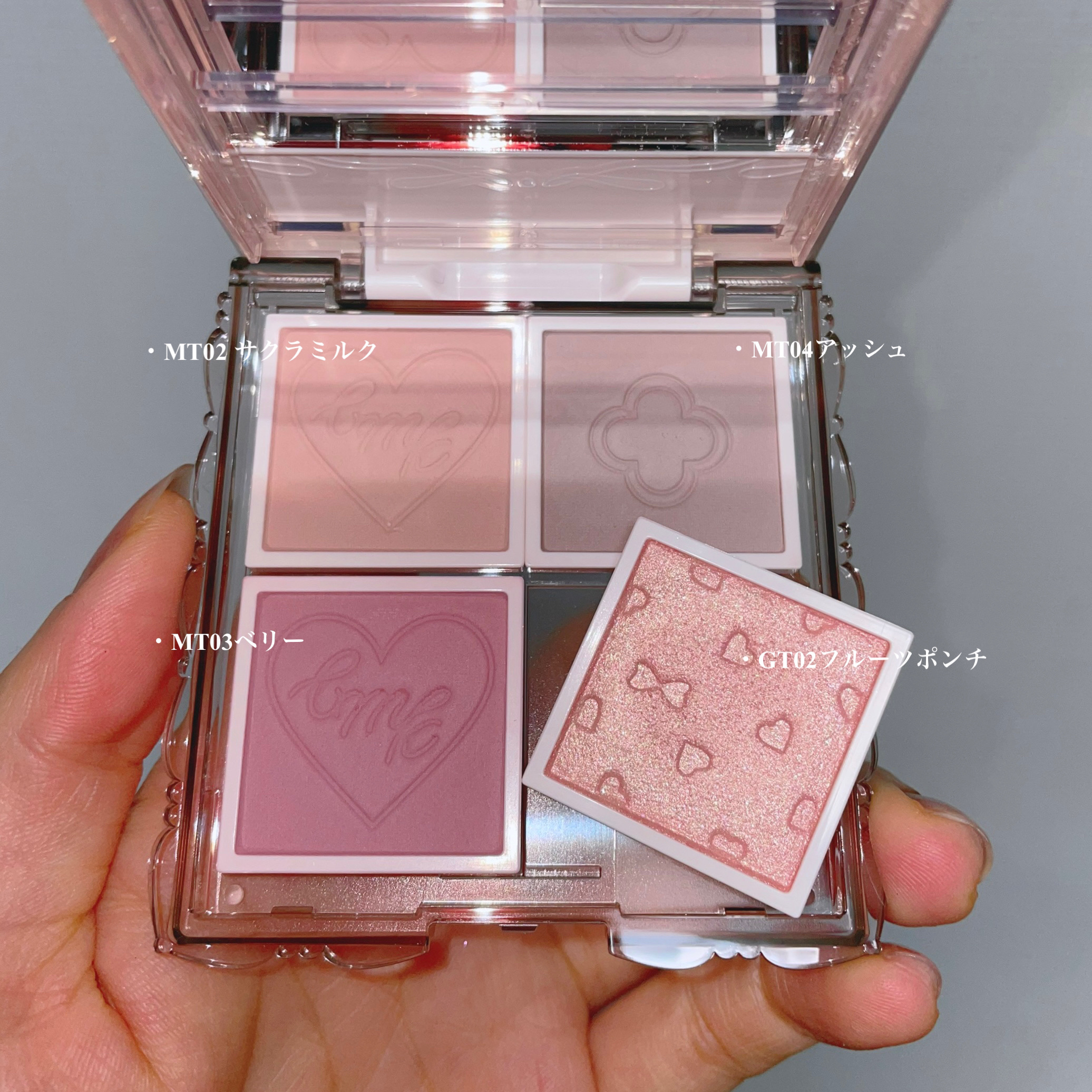 マイトーンクチュールの凄いところはバラで売ってるから自分好みにパレットを作れるところ🎨 透明のプラスチックのケースにもCANMAKEとハートの刻印?みたいなのがされてるところ🎶 ラメ感強め✨️✨️