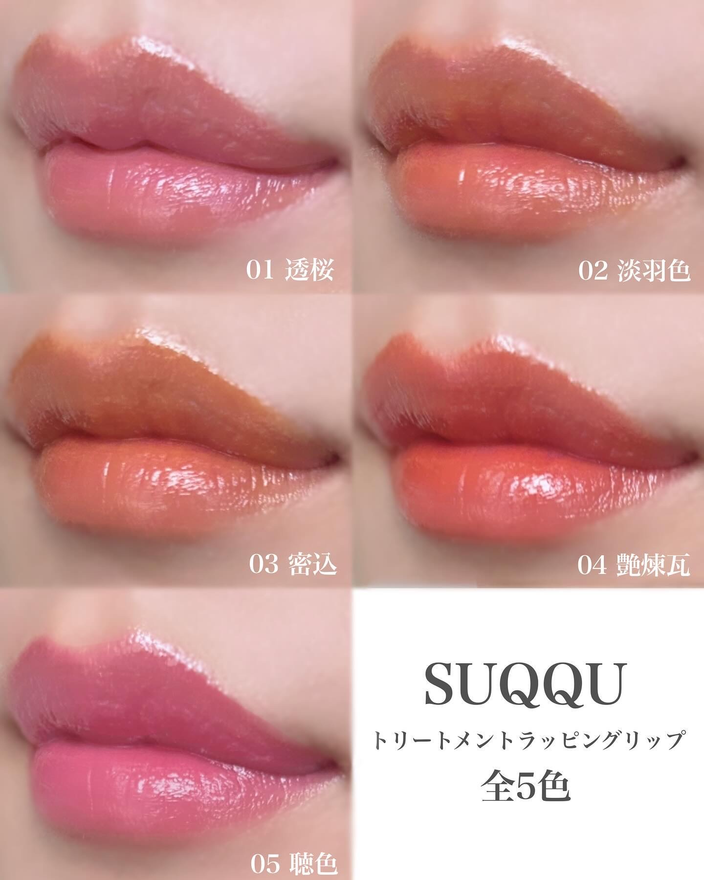 唇の皮向けが気になるときに使うリップ💄SUQQUトリートメントラッピングリップ・02淡羽色-AWAHANEIRO・05聴色-YURUSHIIRO¥4,400✂発色が綺麗で唇が荒れないから何も考えず使えるのがお気に入り💝新色もとても好みのピンク...