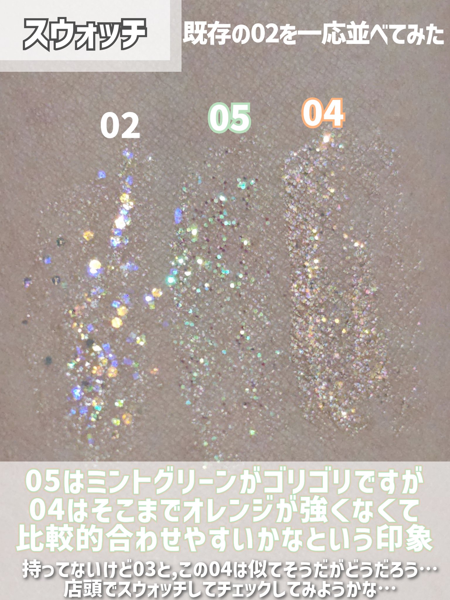 | リキッドアイシャドウランキング第2位 | 中に入っている偏光オーロララメの大きさがまた絶妙で、そのまま塗って使っても良いんだけど瞼にラメを乗せる感じで使ってもキラキラで可愛いよ | 詳細を見る | |