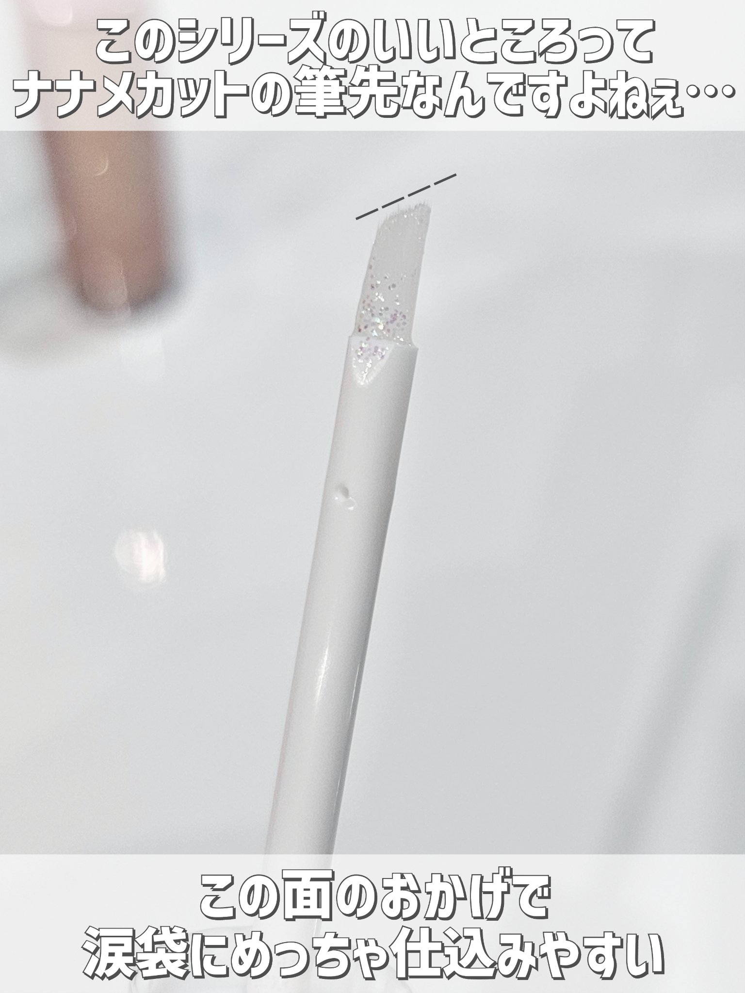 - ダイヤモンドのような輝きで目元キラめくグリッターライナー ○高密着ウォーターベース みずみずしく、まぶたへぴたっと密着 ○オリジナル斜めカット筆 自由自在に線を描ける斜めカット平筆 狙った場所にラメをのせることができます。 ○うるおう美容液成分in 5種のトリートメント成分*1と2種の植物エキス*2 *1 ナイアシンアミド、スイゼンジノリ多糖体、加水分解コラーゲン、パルミトイルトリペプチド-5、ヒアルロン酸Na(すべて保湿成分) *2 ツボクサ葉/茎エキス、アロエベラ葉エキス(すべて保湿成分)