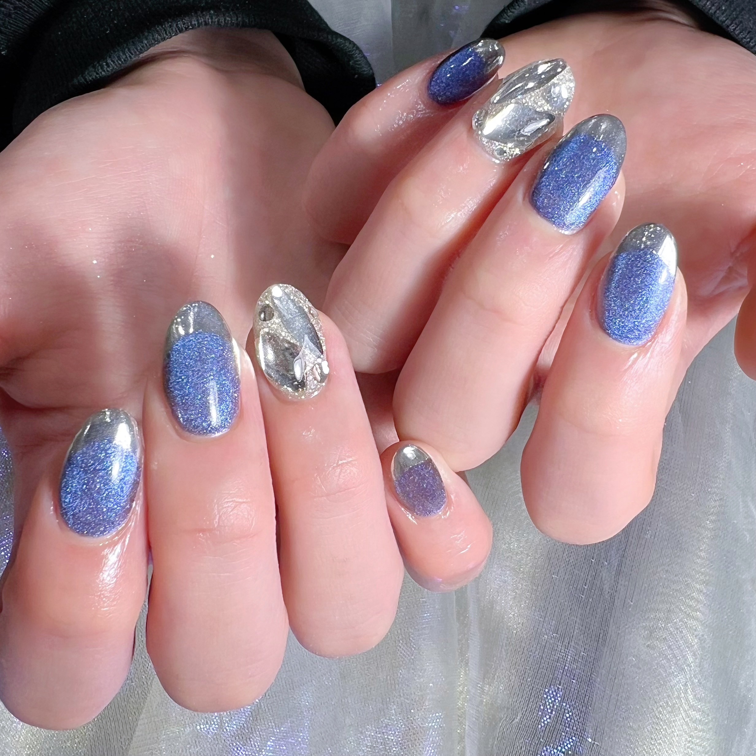 明るめのブルーでめっっちゃかわいい! フラッシュあてるとギラギラ! フラッシュあててなくてもキラッキラ🥹⟡.* セルフネイラーでも手が出るお値段なの本当にありがたい👏👏
