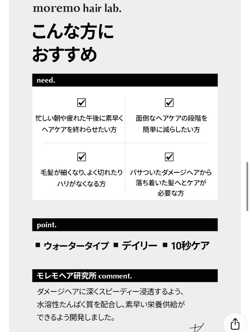 | ヘアケア・スタイリングランキング第145位 | ウォータータイプのトリートメントで時短しながら艶髪が作れちゃう。 | 詳細を見る | |