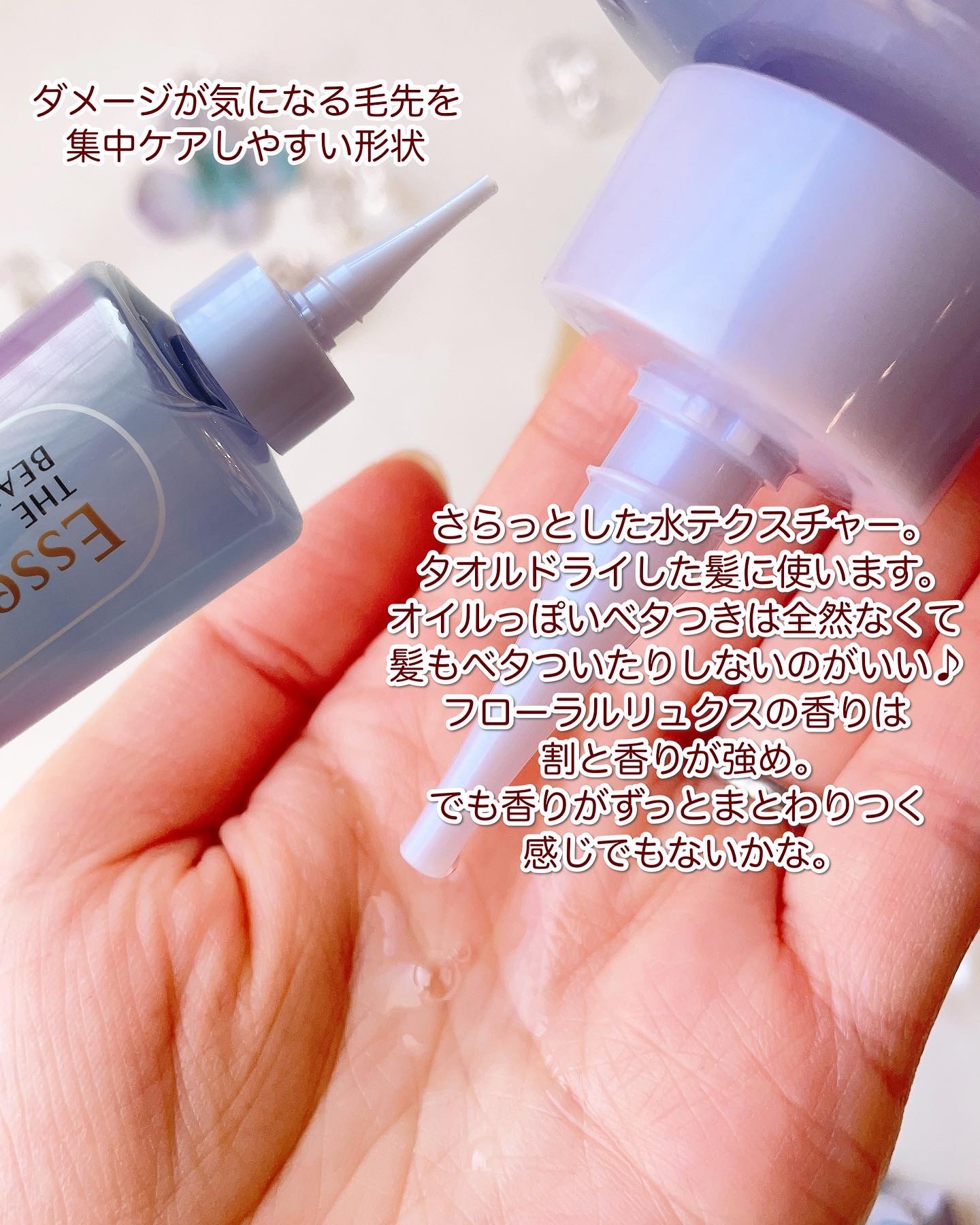 | 乾かすとつるんとした手触りの髪になるのも良き◎ウォーターなので、使用感が軽いところも良いな〜〜と思いました | 詳細を見る | ||