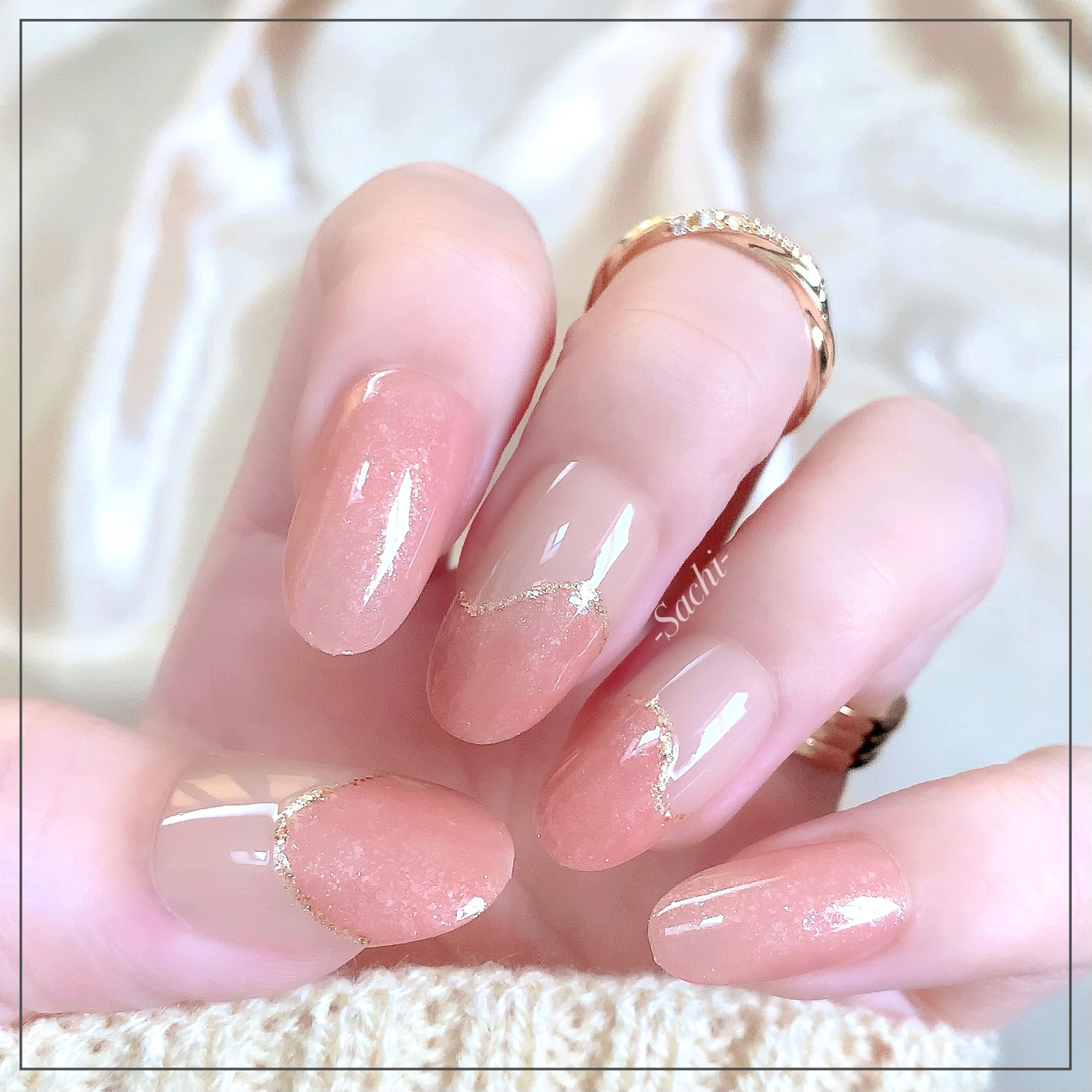 暖かい感じのネイルですね👍Sachiさんの細くて綺麗な指にジャストフィットするネイルですね🥰